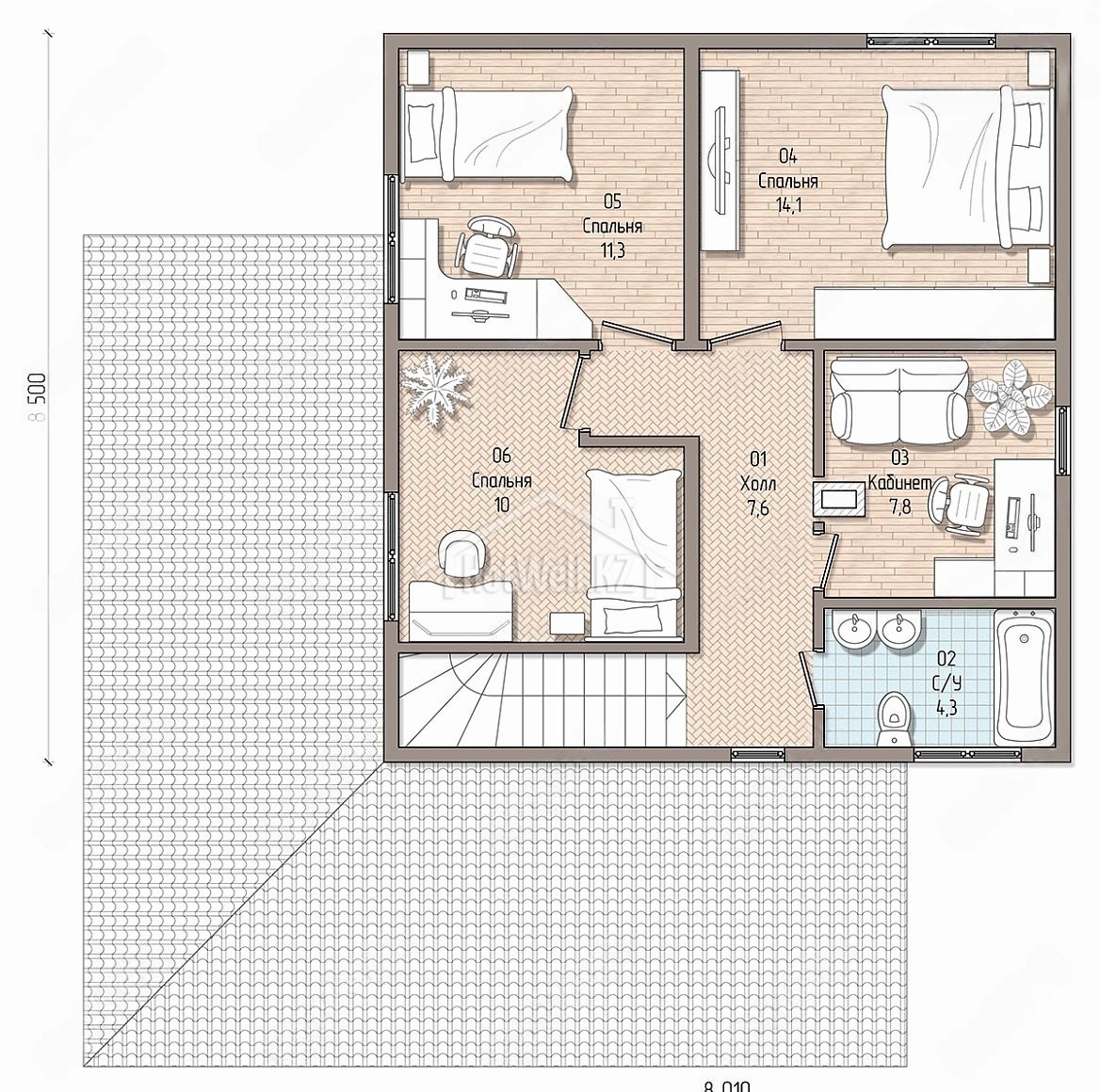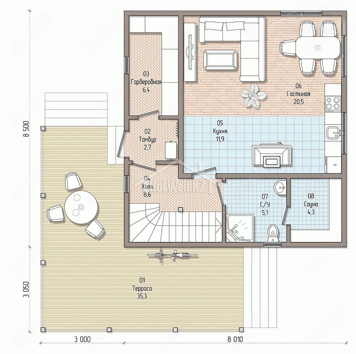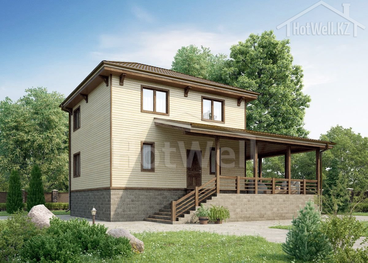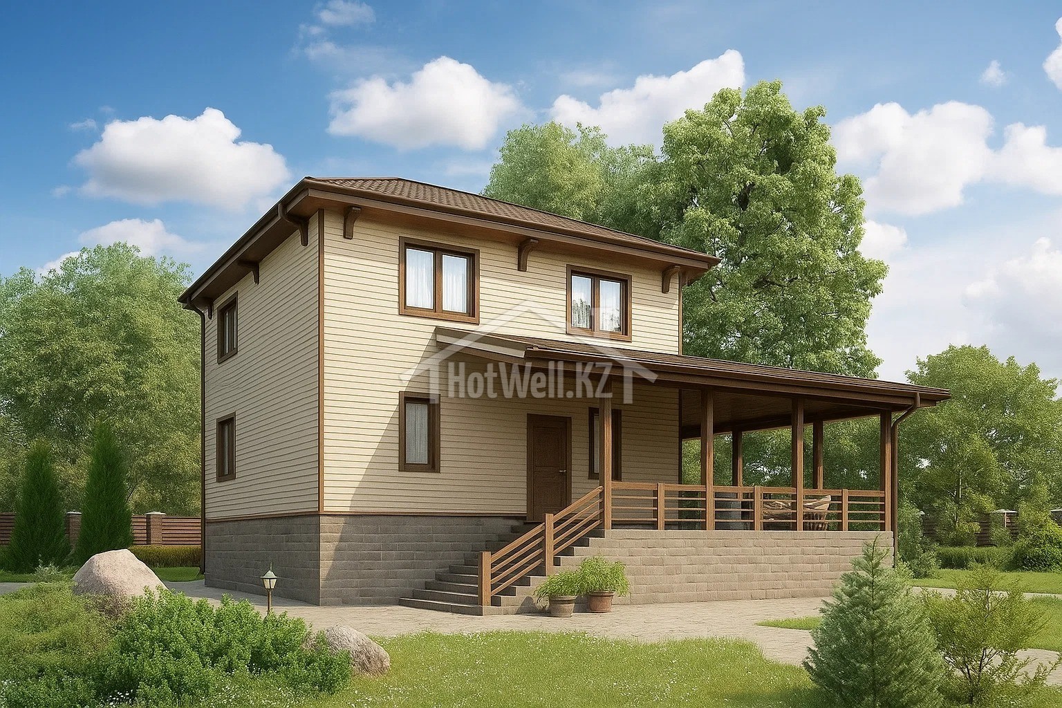 Двухэтажный дом 12 на 11 метров, общей площадью 172 м2, из СИП панелей, с сауной и террасой.