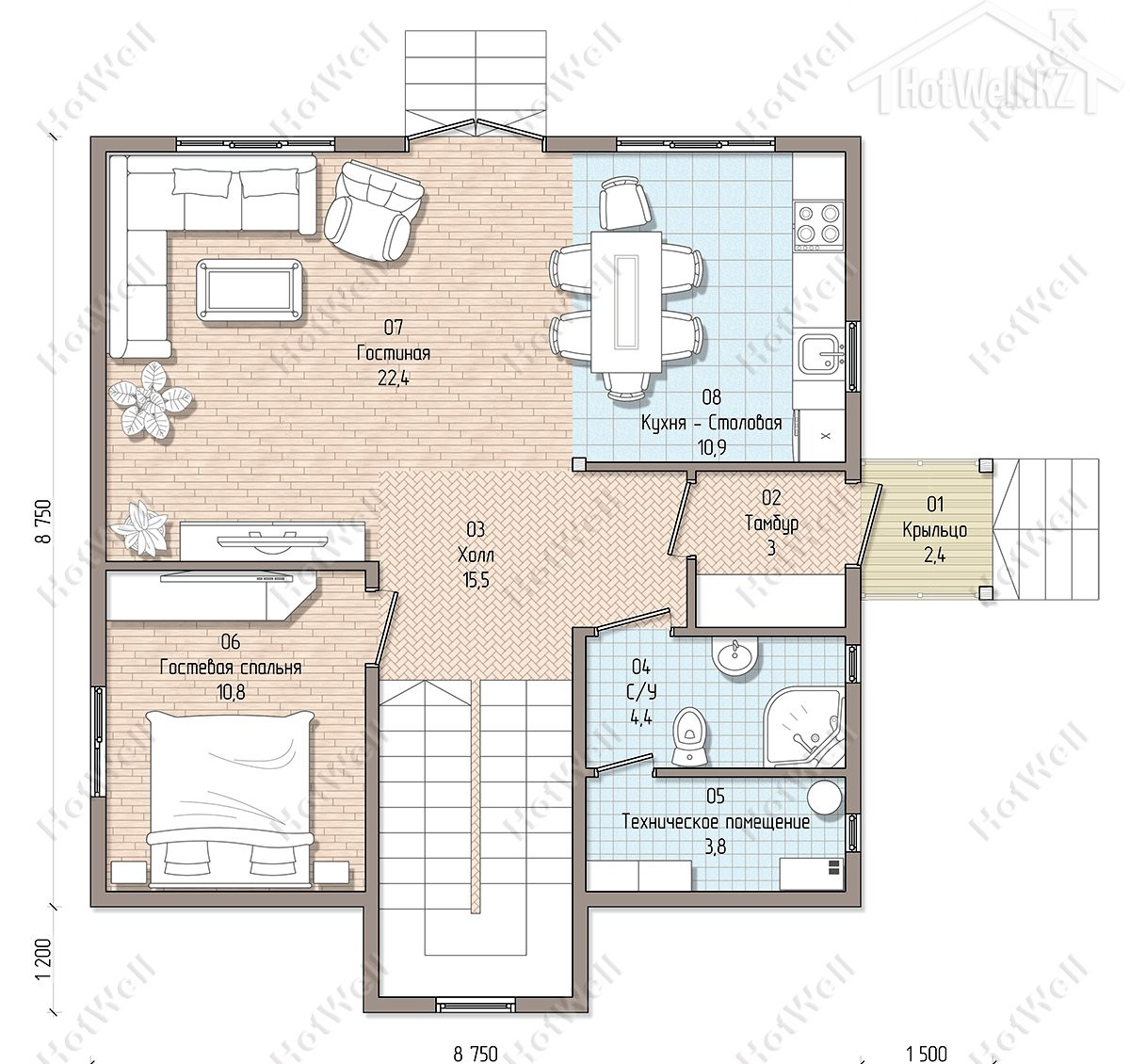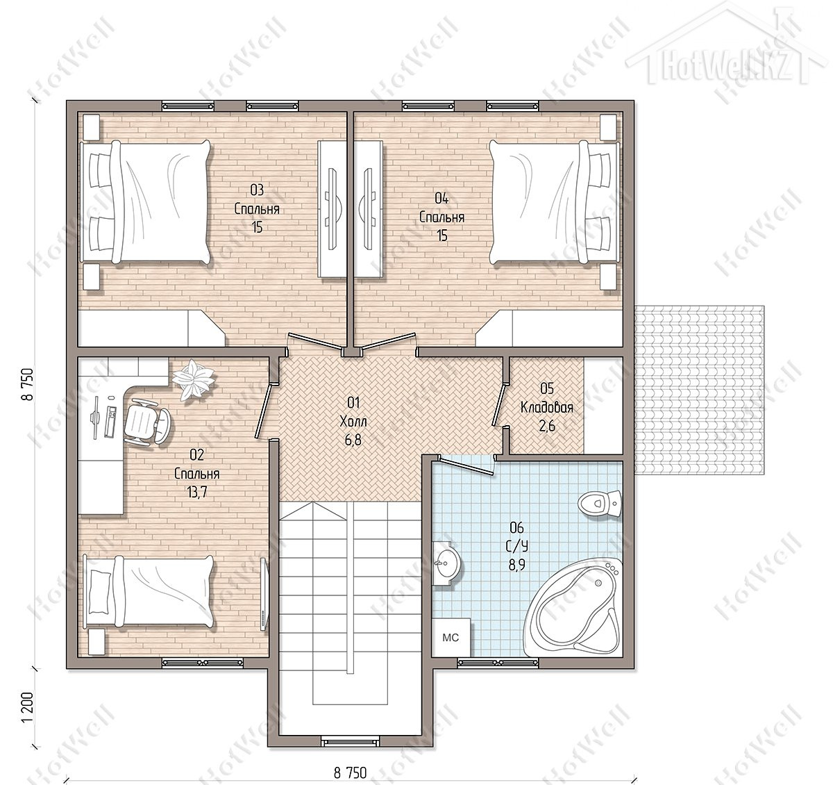 Дом с мансардой 10 на 10 метров, общей площадью 162 м2, из СИП панелей, с бойлерной и спальней на первом этаже.