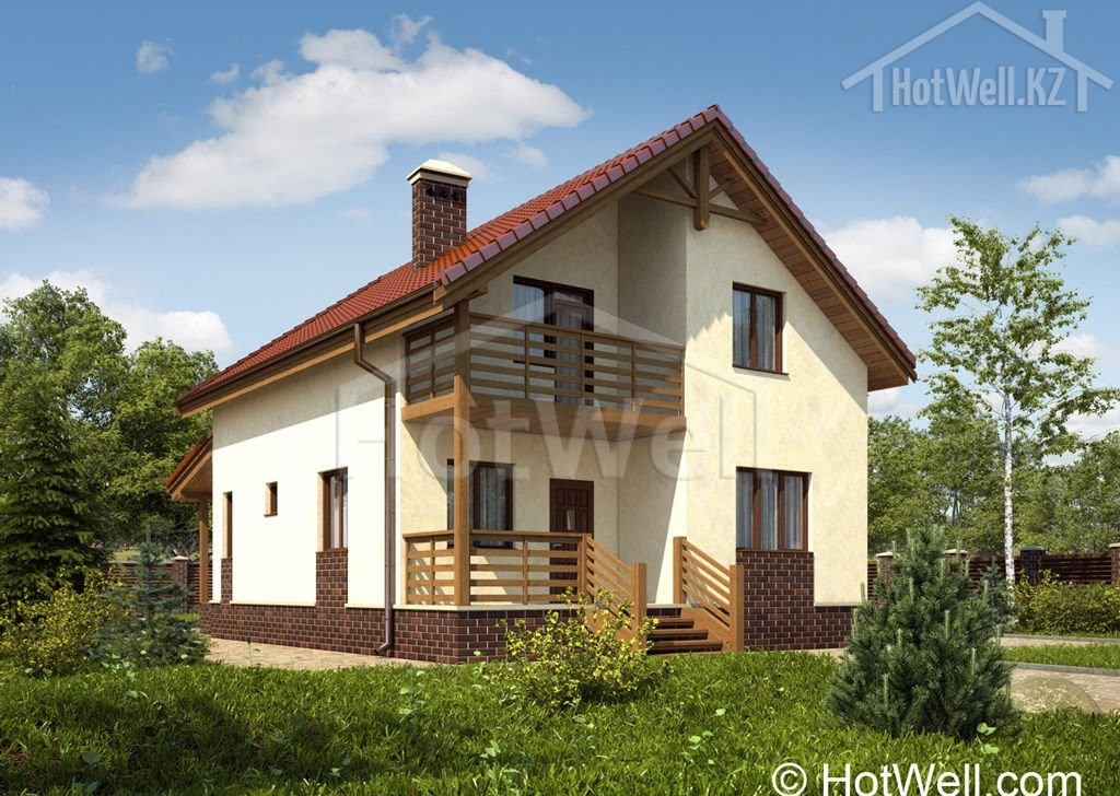Дом с мансардой 14 на 9 метров, общей площадью 195 м2, из СИП панелей, с бойлерной, террасой, балконом и спальней на первом этаже.