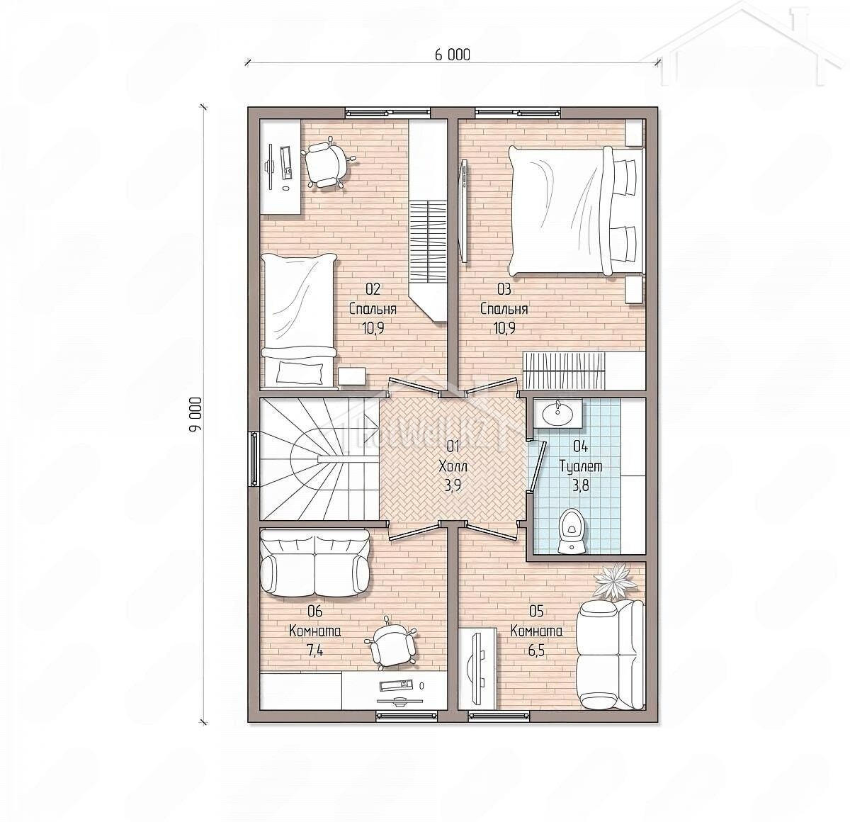 Дом с мансардой 9 на 6 метров, общей площадью 108 м2, из СИП панелей, с бойлерной.