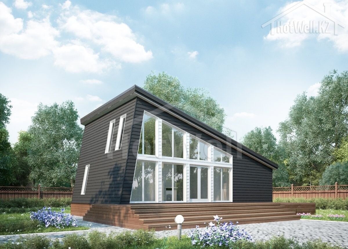 Дом с мансардой 12 на 11 метров, общей площадью 134 м2, из СИП панелей, с террасой, вторым светом и спальней на первом этаже.