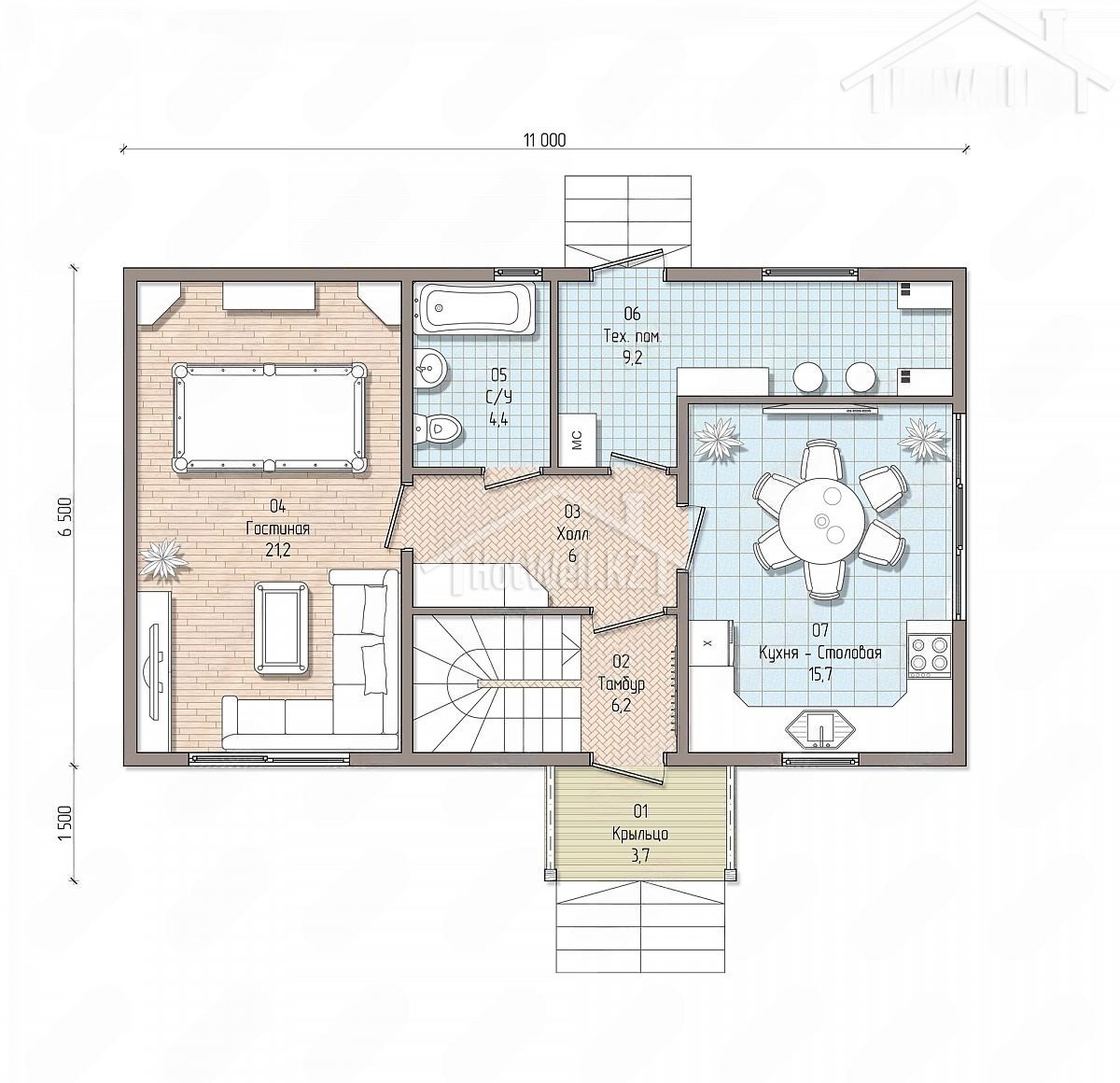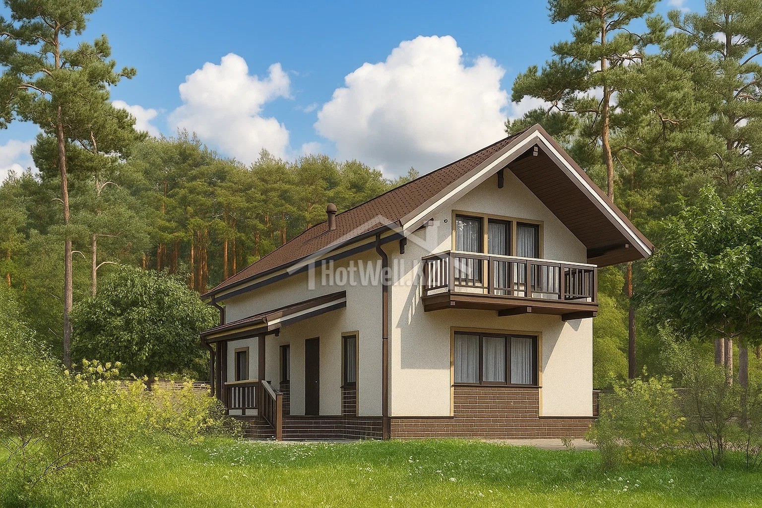 Дом с мансардой 11 на 8 метров, общей площадью 152 м2, из СИП панелей, с бойлерной и балконом.