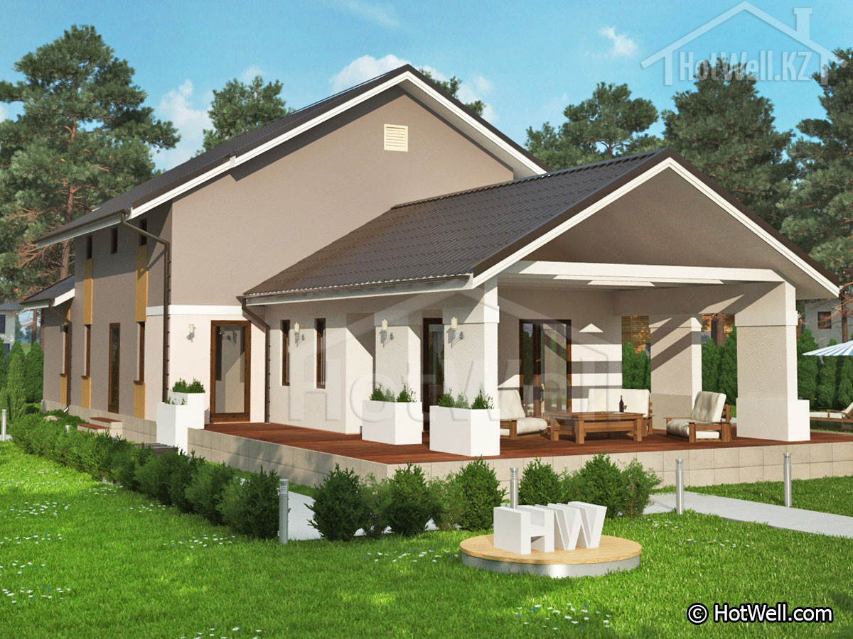 Данный проект дома основан на основе популярного проекта А-100, разница в том что у данного проекта вынесено за пределы дома тех помещение с тамбуром. Проект имеет большую гостинную на первом этаже 22 м2, отдельную кухню. Второй этаж имеет три спальни и сан узел. Тип крыши двускатная. Очень хороший и популярный проект.