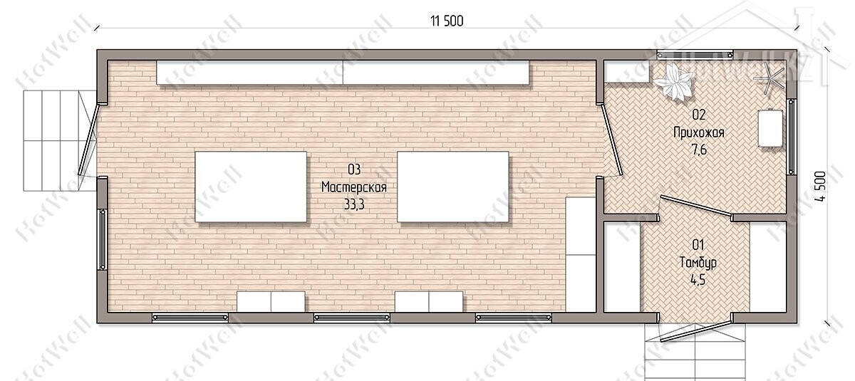 Одноэтажный дом 12 на 5 метров, общей площадью 52 м2, из СИП панелей.