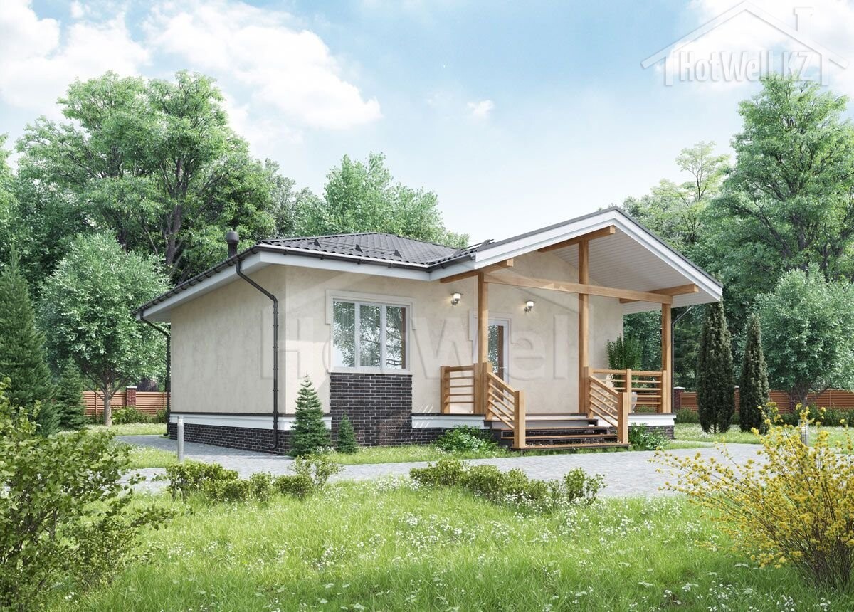 Одноэтажный дом 10 на 9 метров, общей площадью 90 м2, из СИП панелей, с бойлерной и спальней на первом этаже.