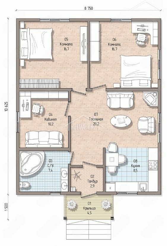 Внешние + внутренние несущие стены из СИП панелей Hotwell.KZ 158 мм (OSB-3 Толщина 9 мм, Пенополистирол ПСБ-С-20Ф)