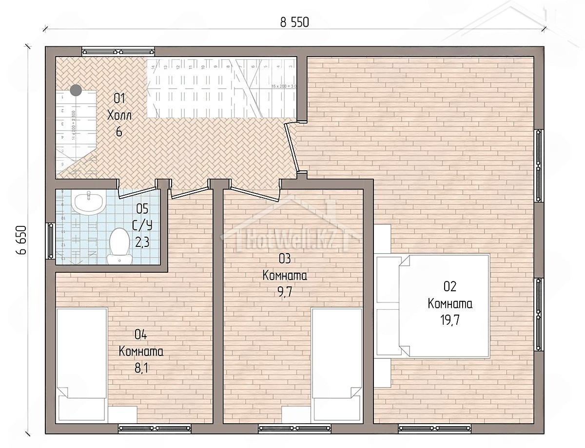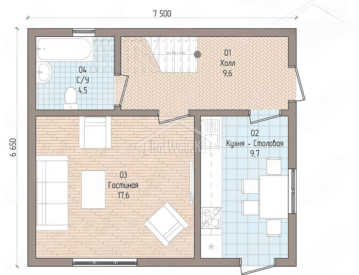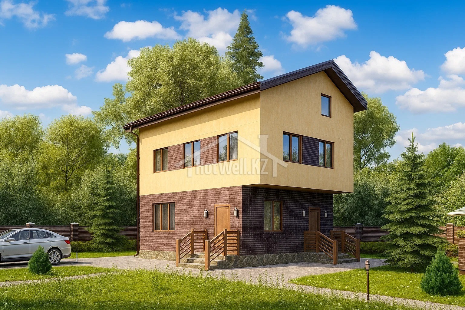 Трехэтажный дом 9 на 7 метров, общей площадью 164 м2, из СИП панелей, со спальней на первом этаже.