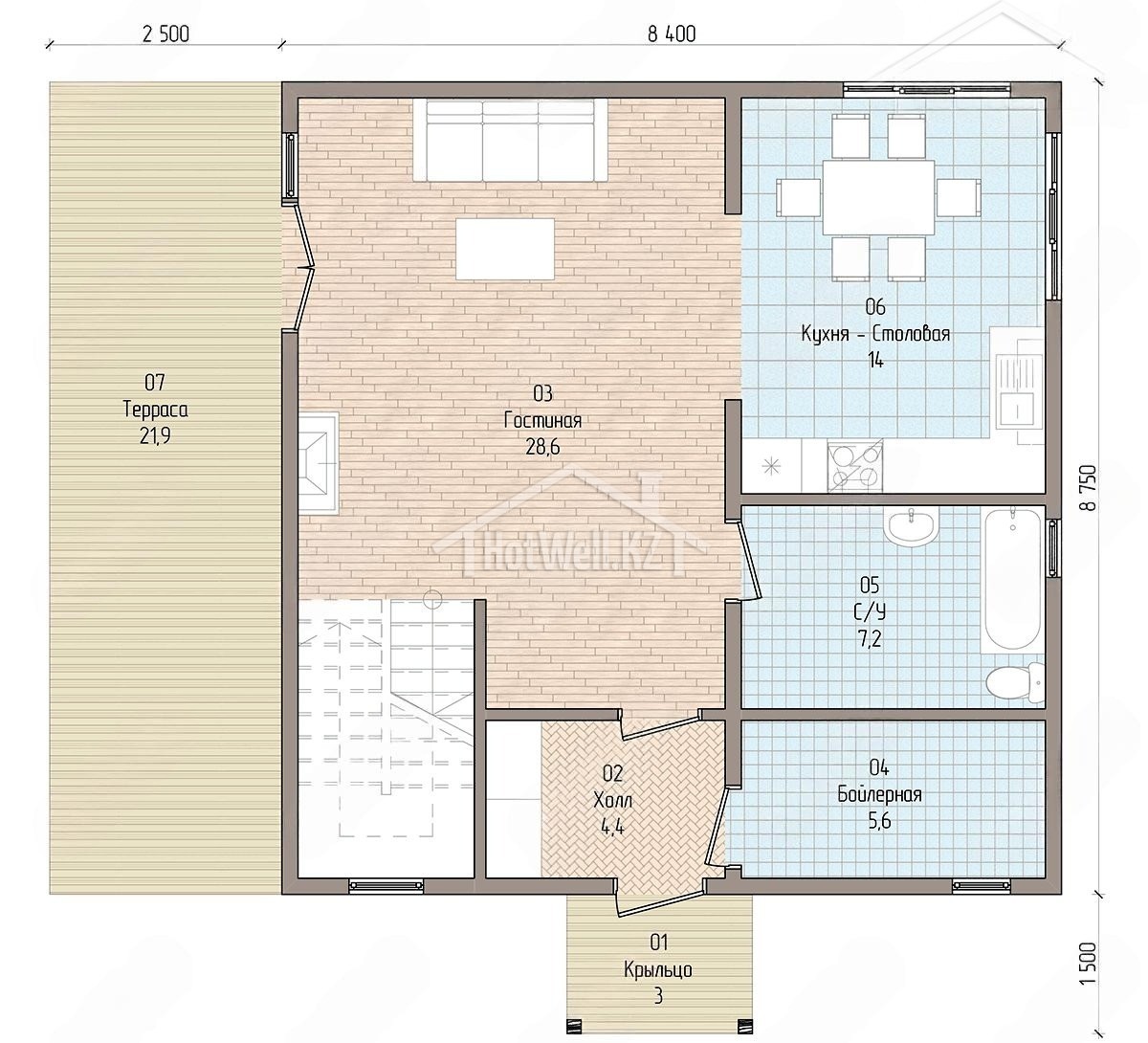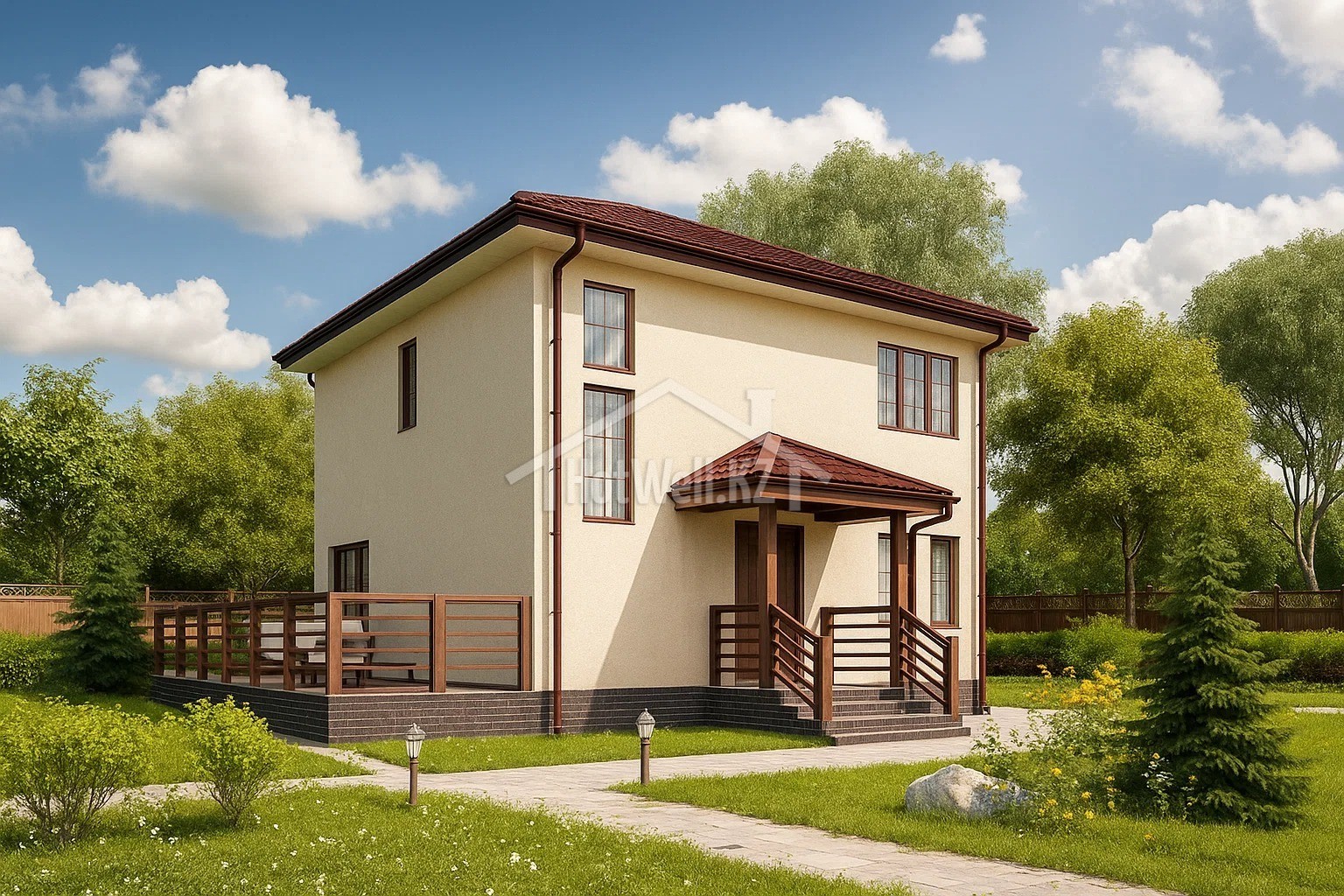 Двухэтажный дом 11 на 10 метров, общей площадью 172 м2, из СИП панелей, с бойлерной и террасой.