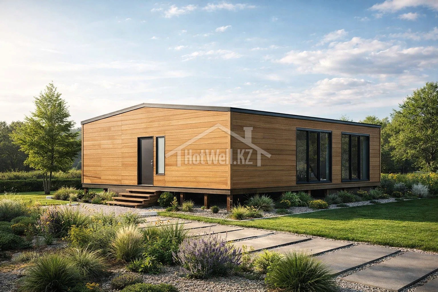 Проект дома «М-138» — одноэтажный дом 138 м² с двускатной крышей