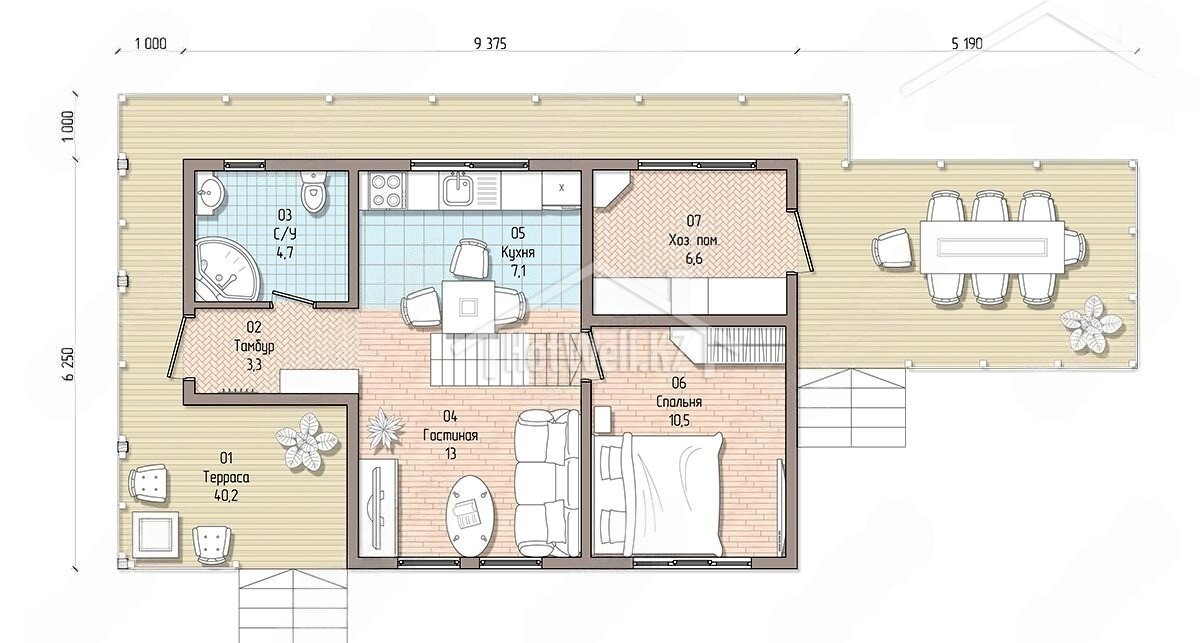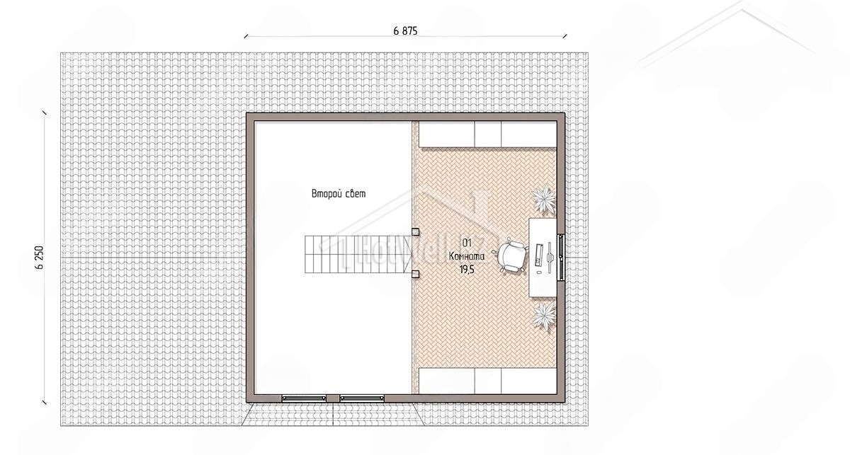 Дом с мансардой 16 на 7 метров, общей площадью 144 м2, из СИП панелей, с террасой, вторым светом и спальней на первом этаже.