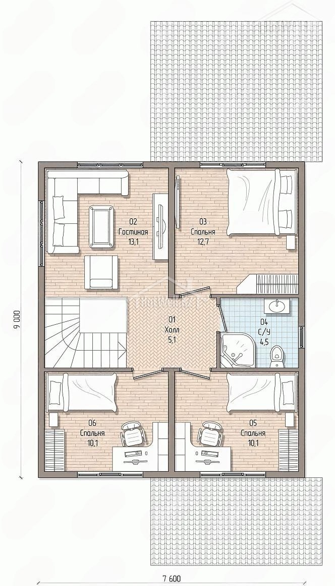Данный проект дома основан на основе популярного проекта А-100, разница в том что у данного проекта вынесено за пределы дома тех помещение с тамбуром. Проект имеет большую гостинную на первом этаже 22 м2, отдельную кухню. Второй этаж имеет три спальни и сан узел. Тип крыши двускатная. Очень хороший и популярный проект.
