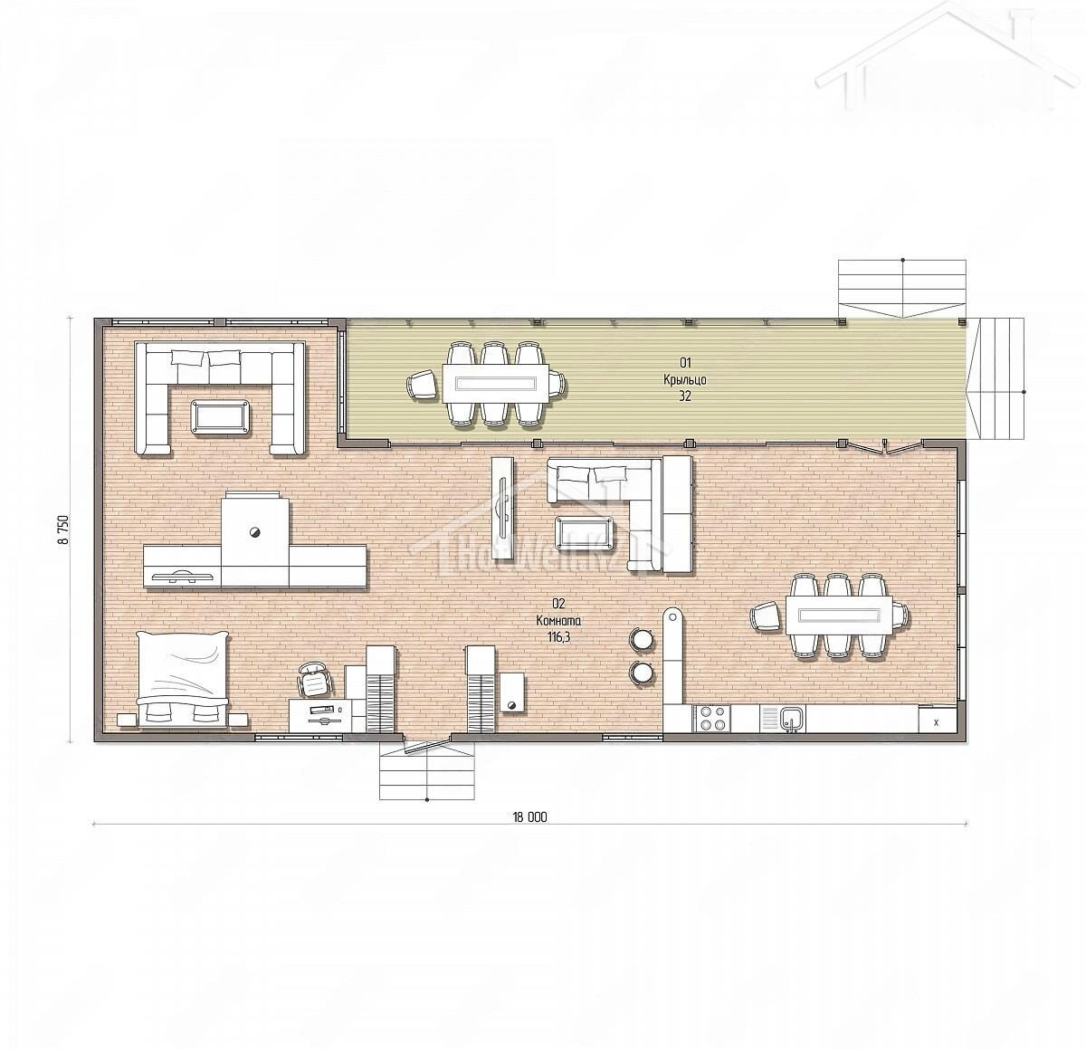 Одноэтажный дом 18 на 9 метров, общей площадью 158 м2, из СИП панелей.
