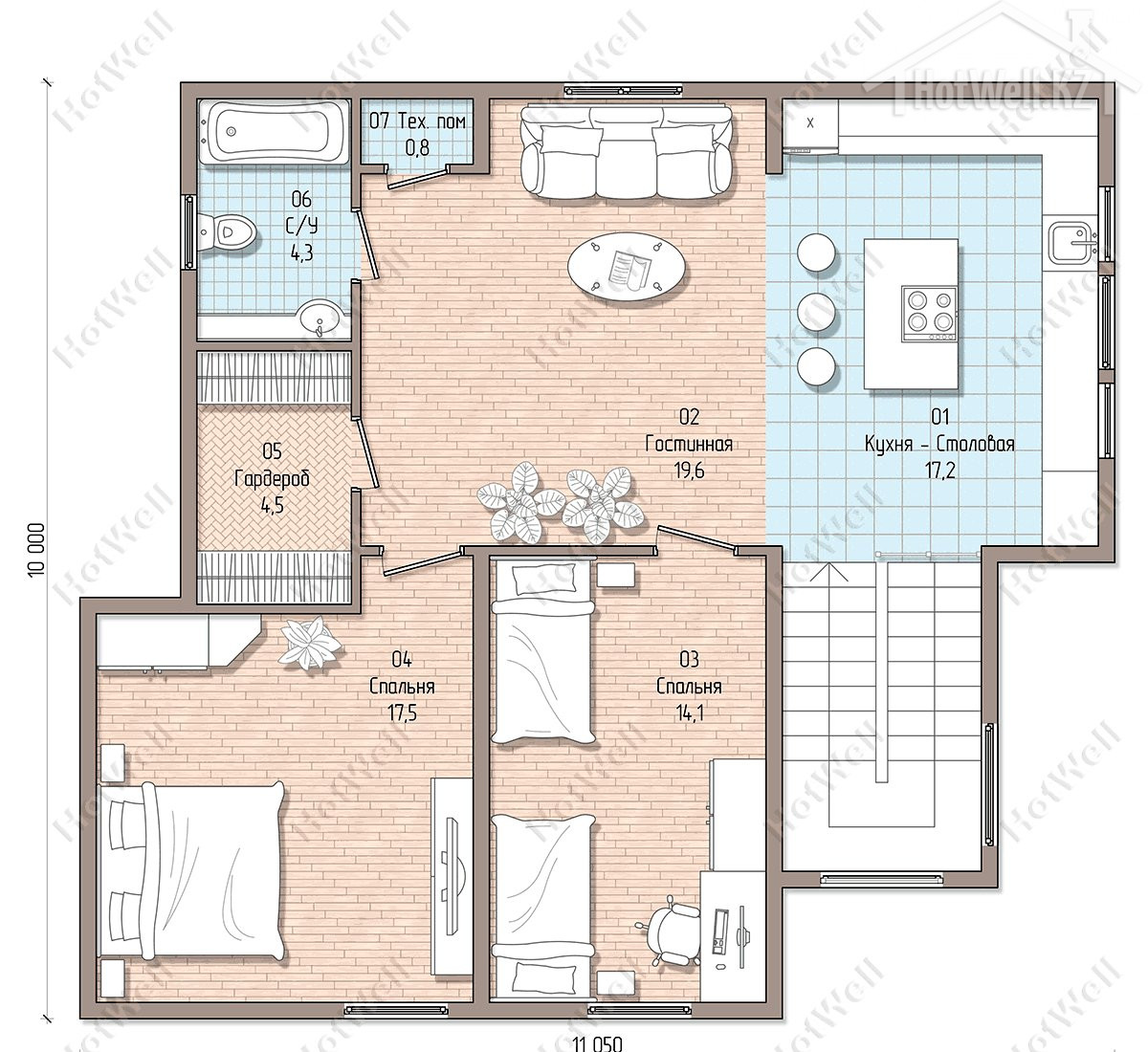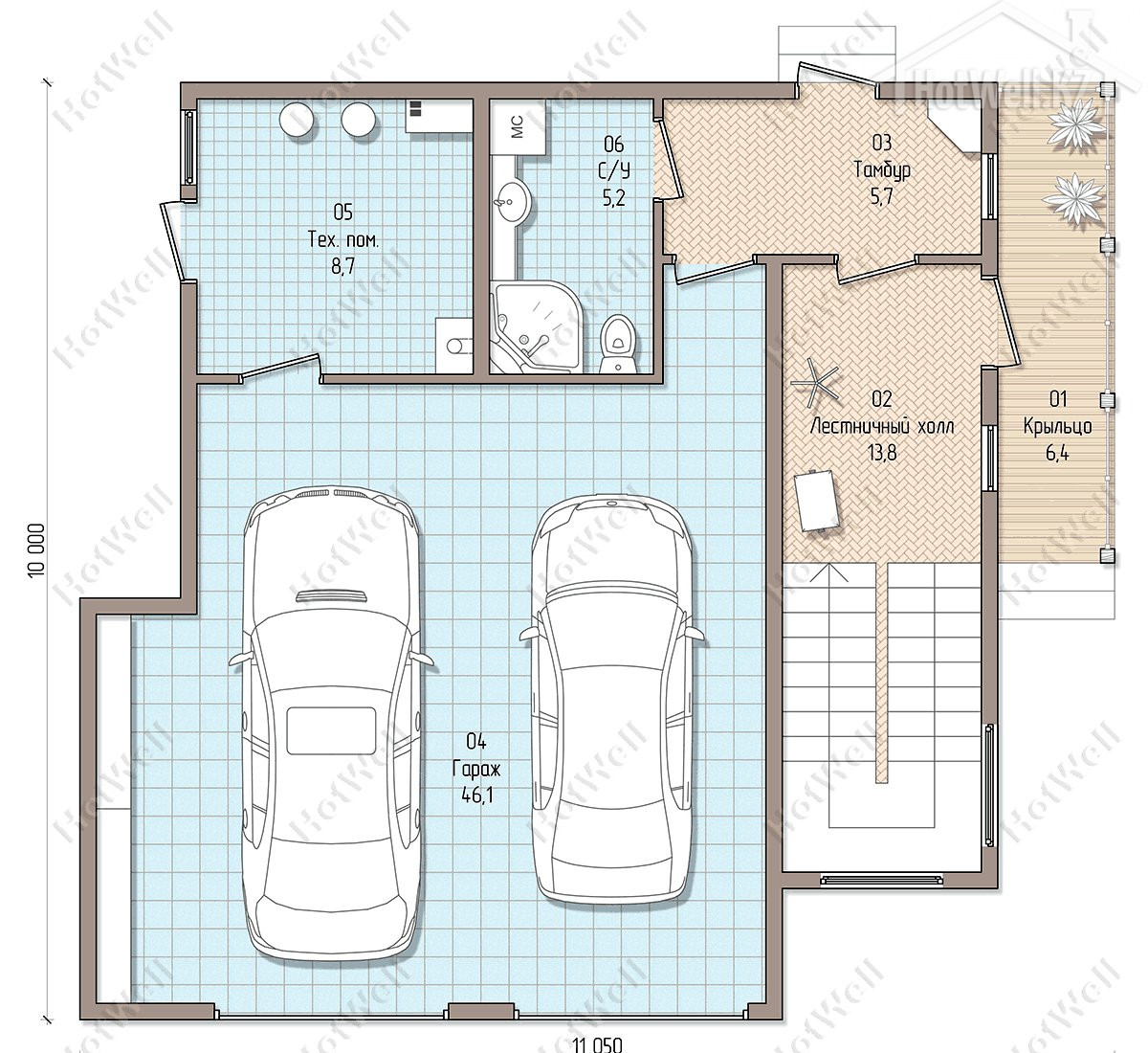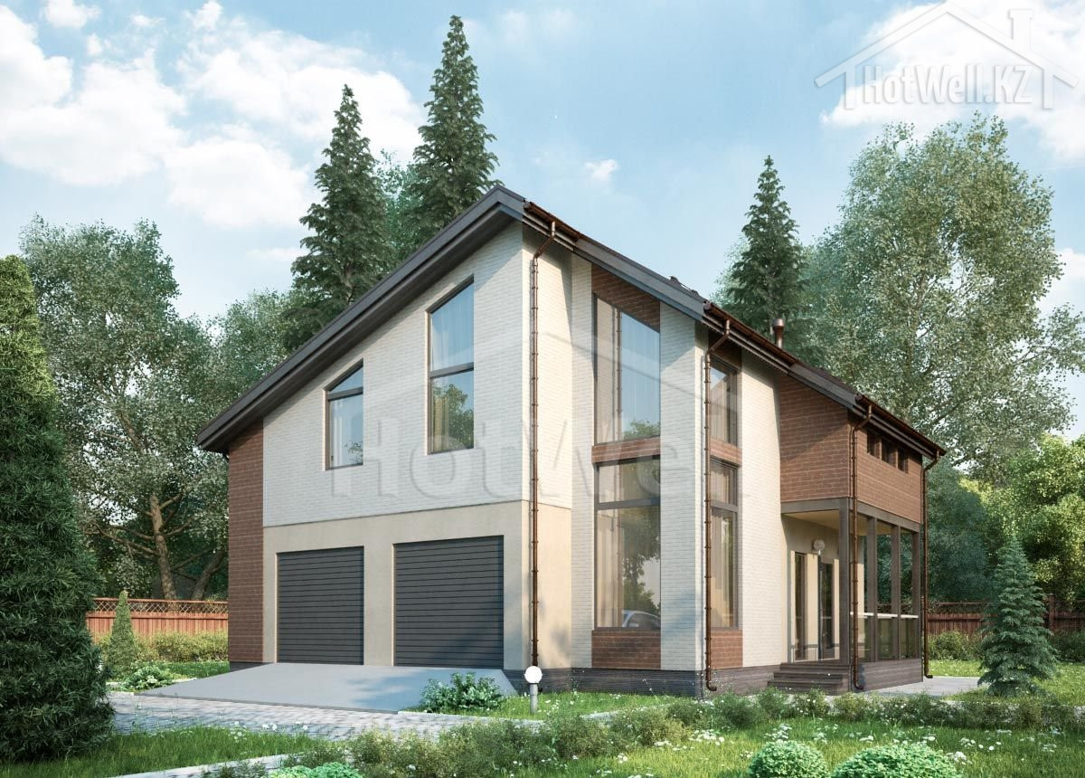 Дом с мансардой 11 на 10 метров, общей площадью 191 м2, из СИП панелей, с гаражом, террасой, балконом и вторым светом.