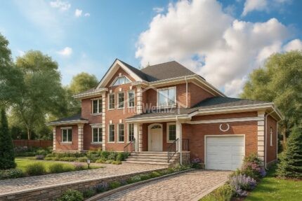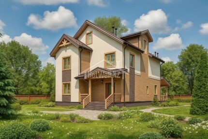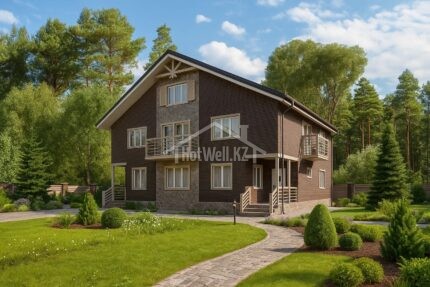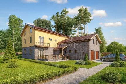 Трехэтажный дом 9 на 13 метров, общей площадью 329 м2, из СИП панелей, с сауной, бойлерной и гаражом.