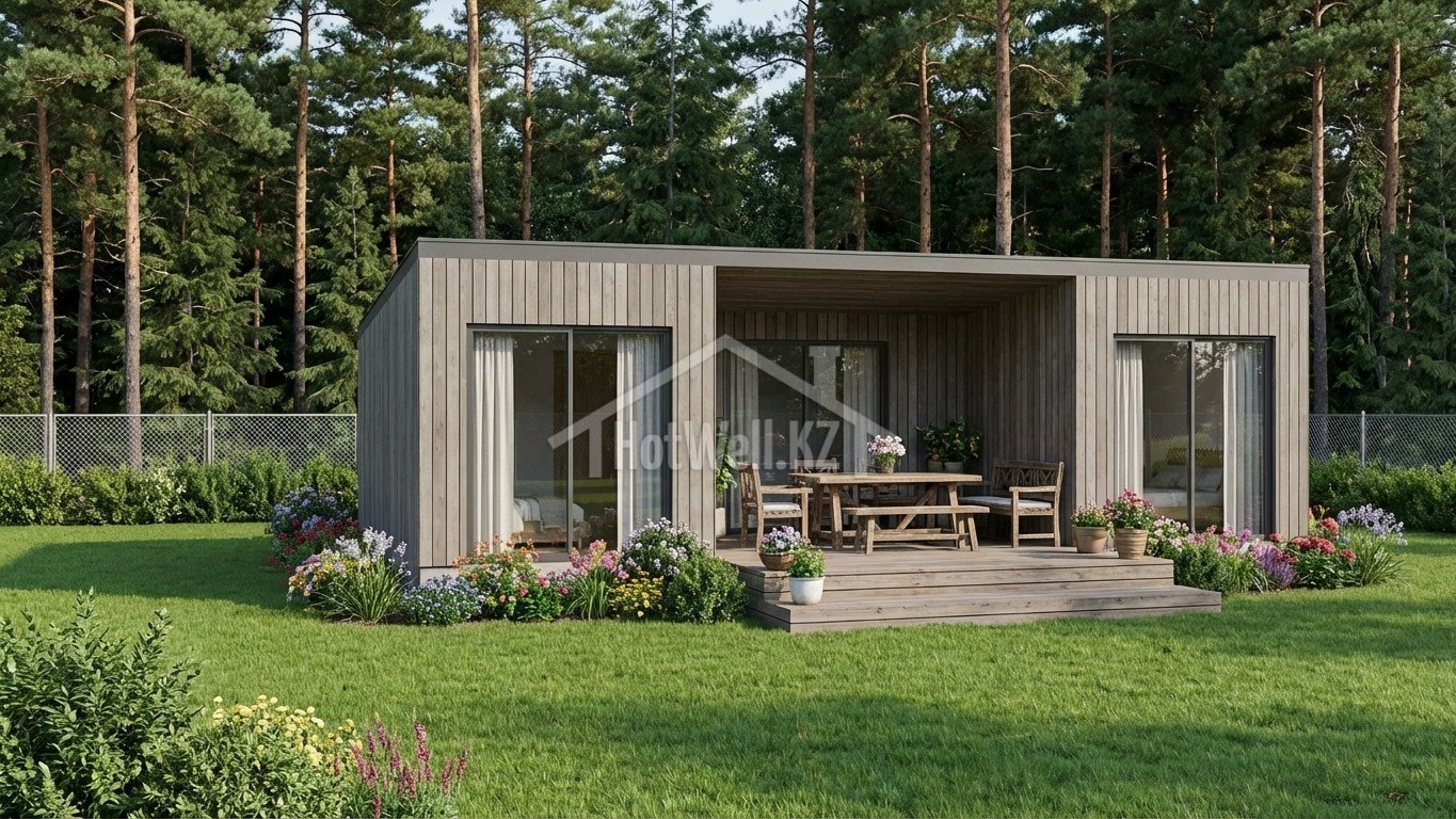 Компактные размеры дома позволяют эффективно использовать участок и быстро реализовать строительство. Внутреннее пространство можно организовать так, чтобы разместить кухонную зону, место для отдыха и необходимые бытовые помещения.