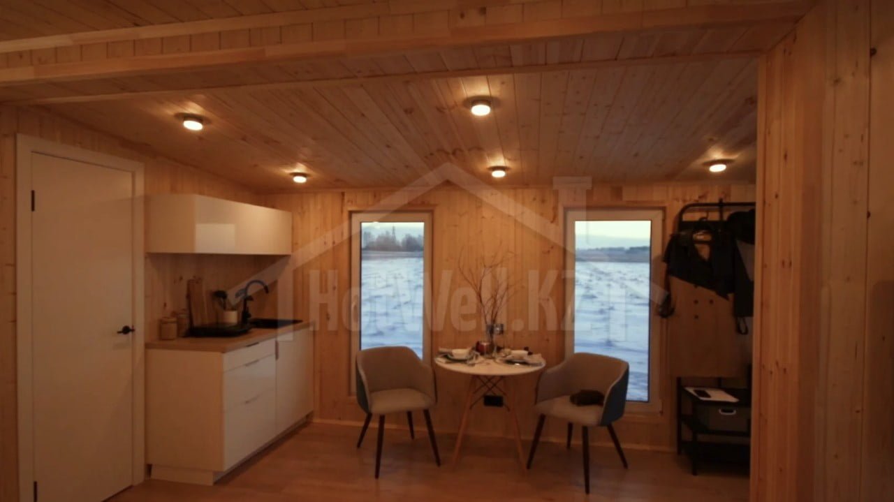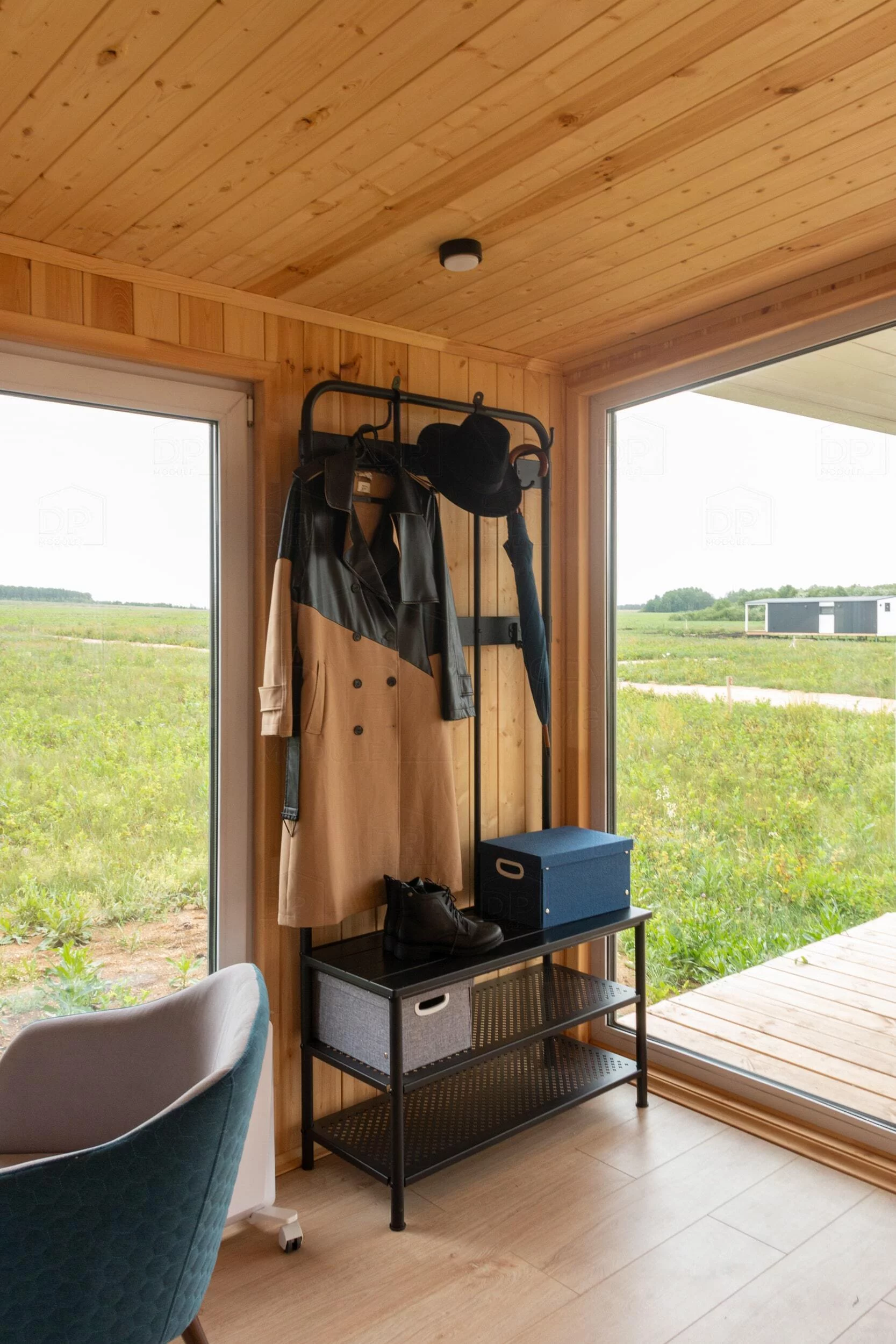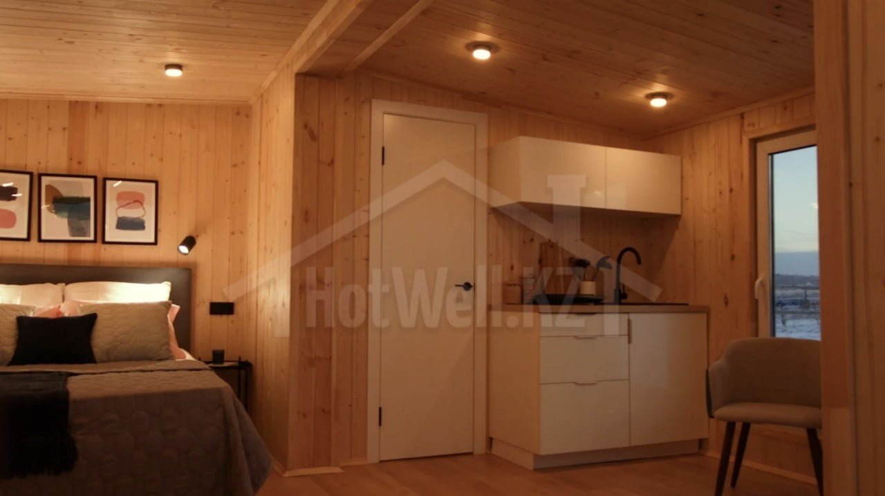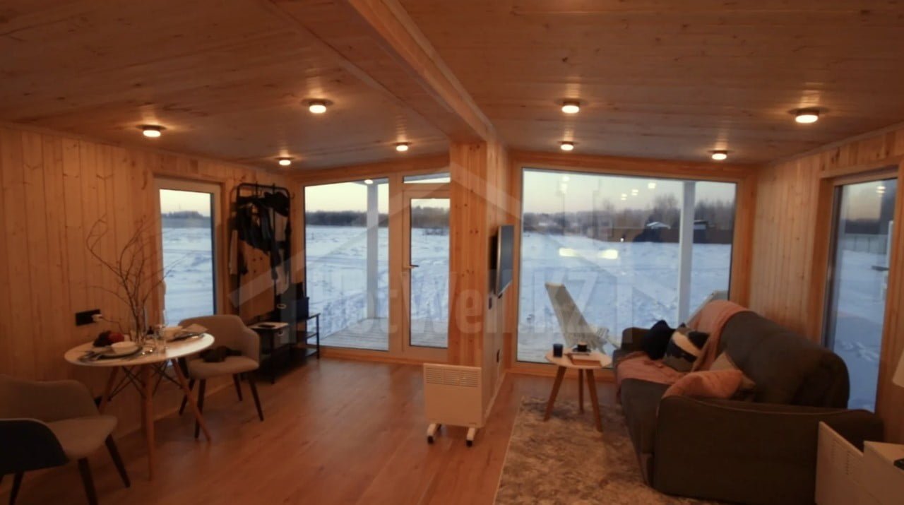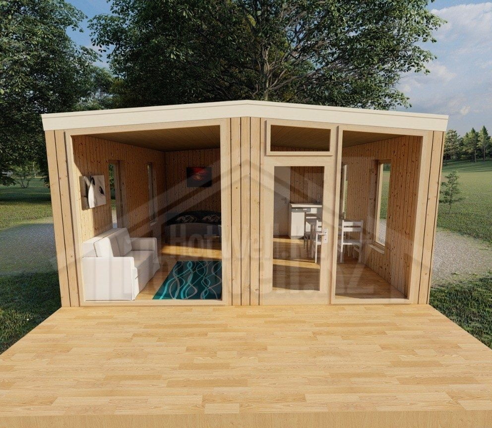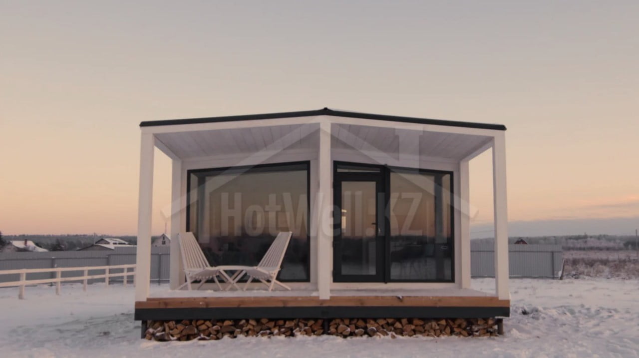 Добро пожаловать в проект модульного дома, который охватывает площадь 40 квадратных метров и состоит из двух модулей, дополненных террасой. Этот дом разработан с учетом максимального комфорта и функциональности для вашей семьи.При входе в дом вы попадаете в просторную гостиную, которая гармонично соединяется с уютной спальней, создавая единое пространство для отдыха и развлечений. Панорамные окна, которыми оборудована гостиная, пропускают много естественного света, а также открывают прекрасные виды на окружающую природу.Кухня-студия в данном проекте является идеальным местом для приготовления пищи и общения. Она просторная и функциональная, идеально сочетается со столовой, создавая удобное пространство для совместных приемов пищи.В доме также имеется санузел, где вы найдете унитаз, душевую кабину и раковину. Это удобное и практичное пространство, обеспечивающее комфорт и удобство в повседневных потребностях.Модульный дом с панорамными окнами предлагает яркий и просторный интерьер, который создает приятную атмосферу и делает ваше проживание комфортным и уютным. Комбинация удобства, стиля и функциональности делает этот дом идеальным местом для вашей семьи.Наша команда стремится создавать дома, которые отражают ваш уникальный стиль и обеспечивают все необходимое для комфортной жизни. Этот модульный дом является идеальным вариантом для семьи, которая ценит простоту и функциональность без ущерба для стиля и комфорта.