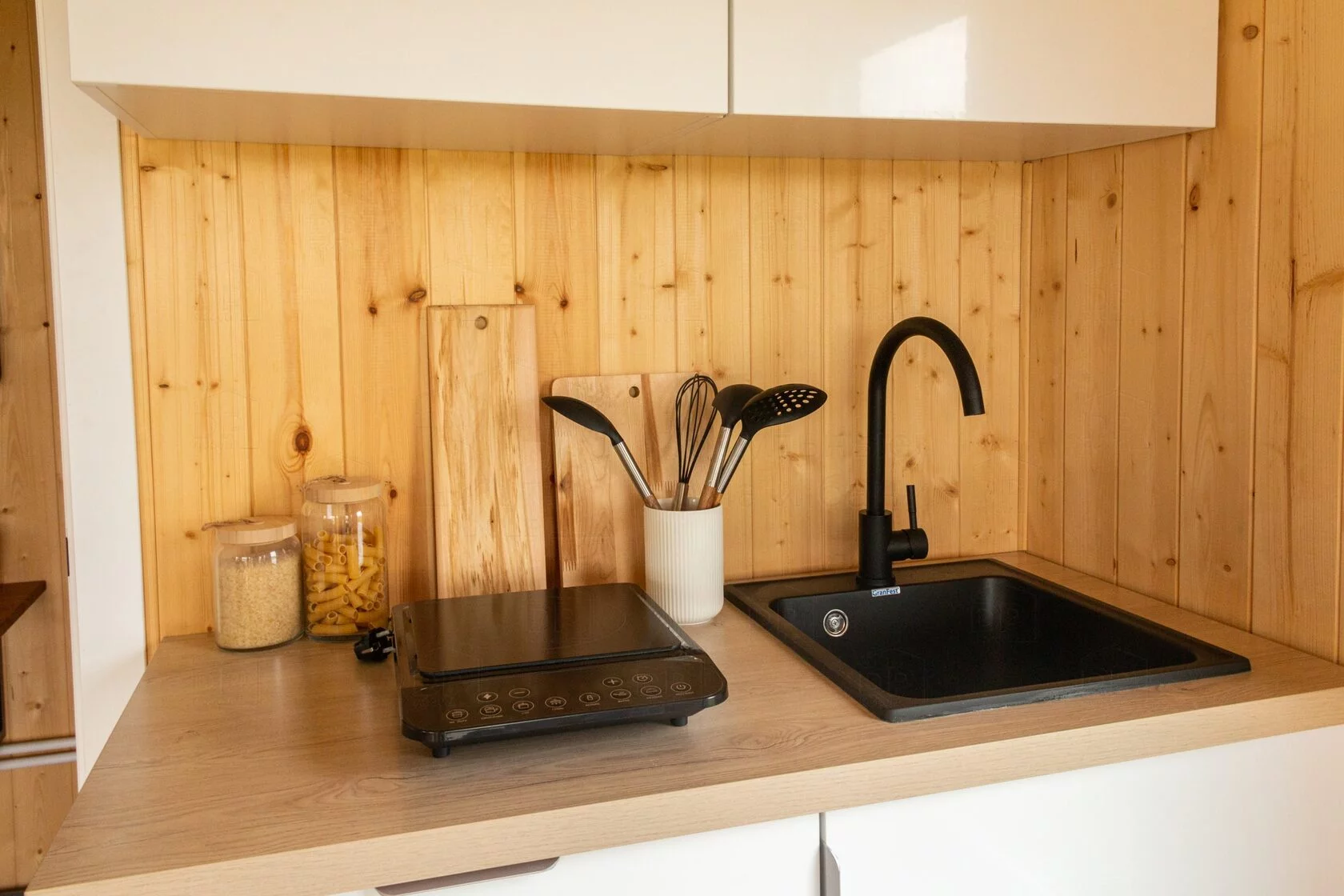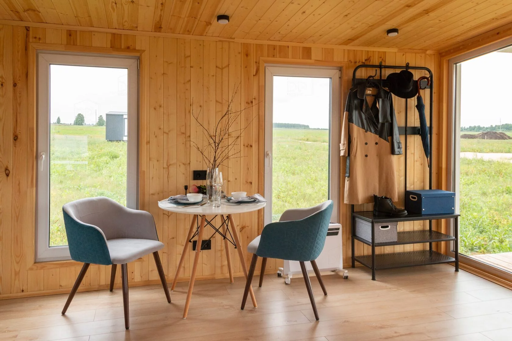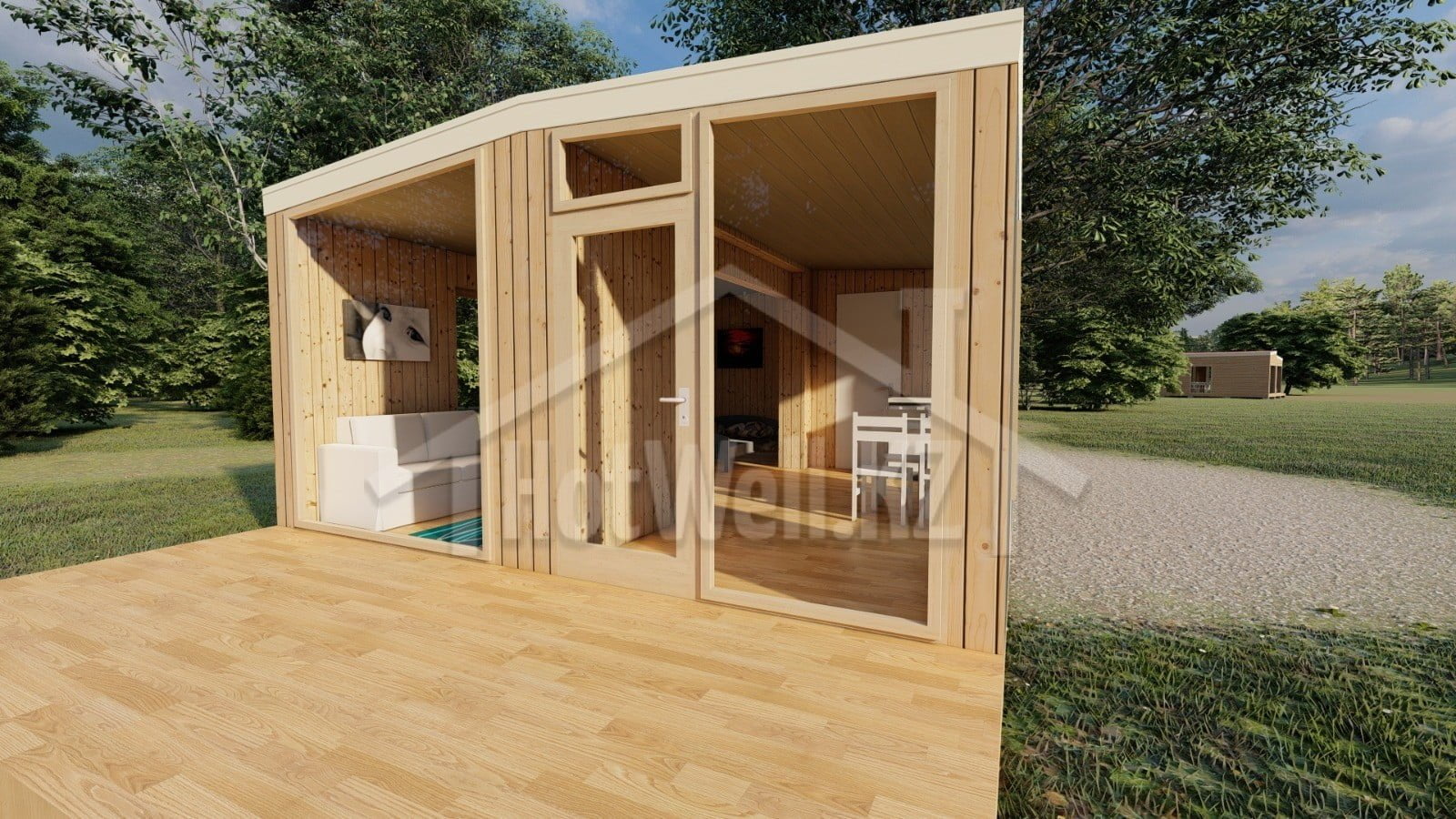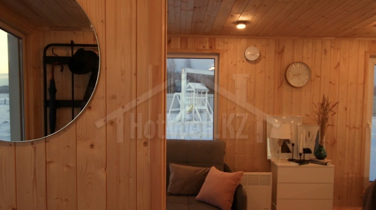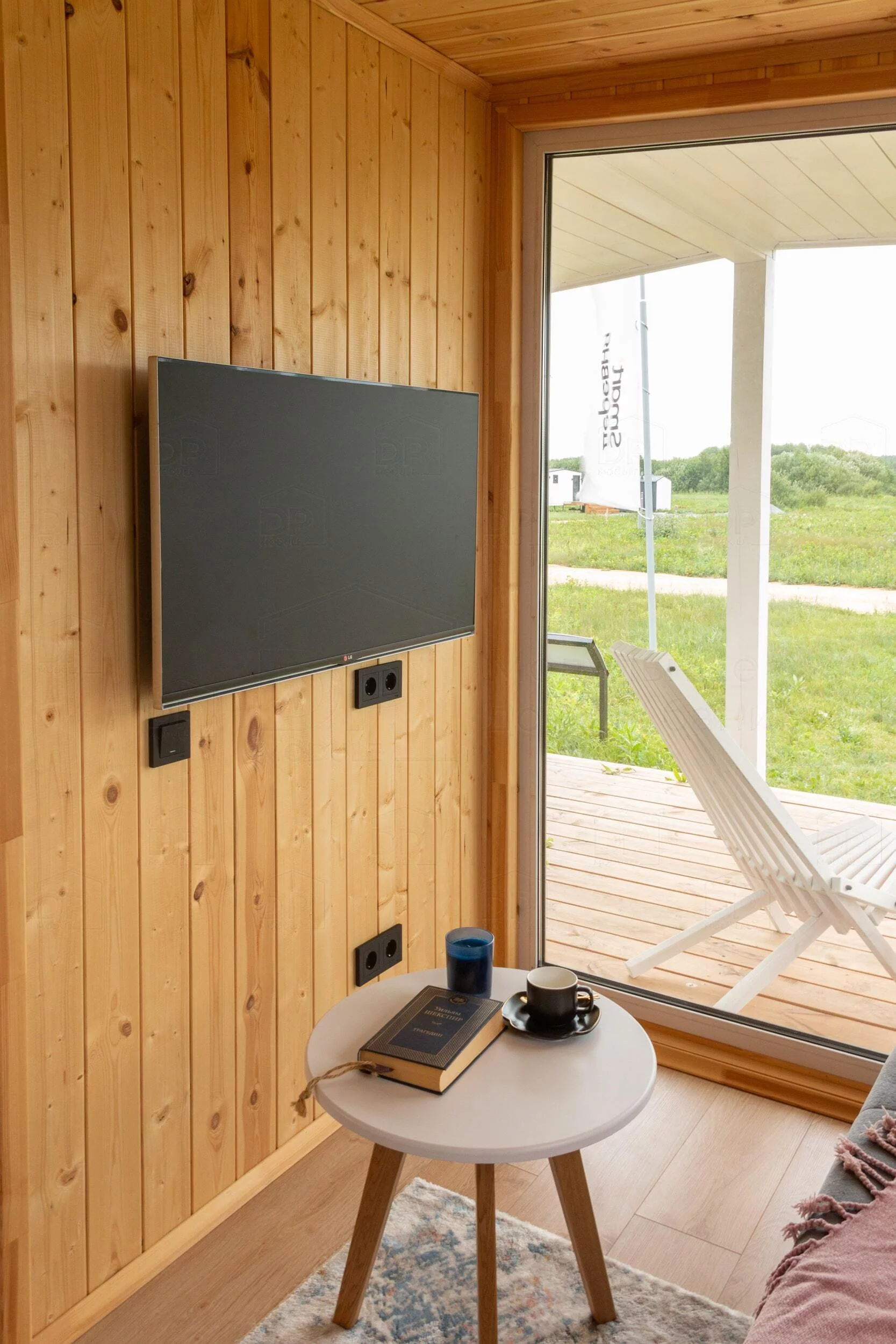Добро пожаловать в проект модульного дома, который охватывает площадь 40 квадратных метров и состоит из двух модулей, дополненных террасой. Этот дом разработан с учетом максимального комфорта и функциональности для вашей семьи.При входе в дом вы попадаете в просторную гостиную, которая гармонично соединяется с уютной спальней, создавая единое пространство для отдыха и развлечений. Панорамные окна, которыми оборудована гостиная, пропускают много естественного света, а также открывают прекрасные виды на окружающую природу.Кухня-студия в данном проекте является идеальным местом для приготовления пищи и общения. Она просторная и функциональная, идеально сочетается со столовой, создавая удобное пространство для совместных приемов пищи.В доме также имеется санузел, где вы найдете унитаз, душевую кабину и раковину. Это удобное и практичное пространство, обеспечивающее комфорт и удобство в повседневных потребностях.Модульный дом с панорамными окнами предлагает яркий и просторный интерьер, который создает приятную атмосферу и делает ваше проживание комфортным и уютным. Комбинация удобства, стиля и функциональности делает этот дом идеальным местом для вашей семьи.Наша команда стремится создавать дома, которые отражают ваш уникальный стиль и обеспечивают все необходимое для комфортной жизни. Этот модульный дом является идеальным вариантом для семьи, которая ценит простоту и функциональность без ущерба для стиля и комфорта.