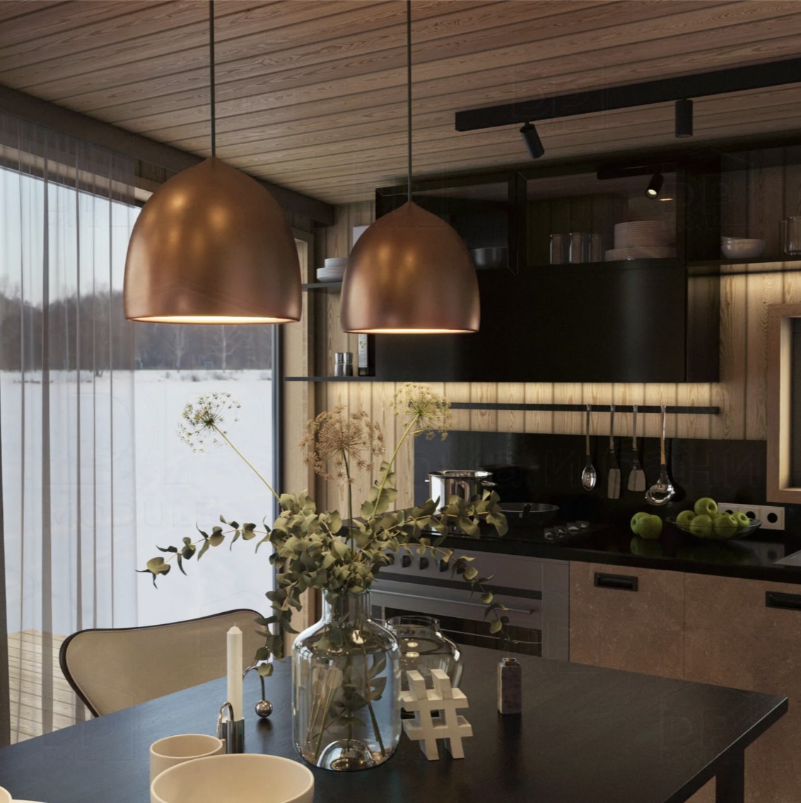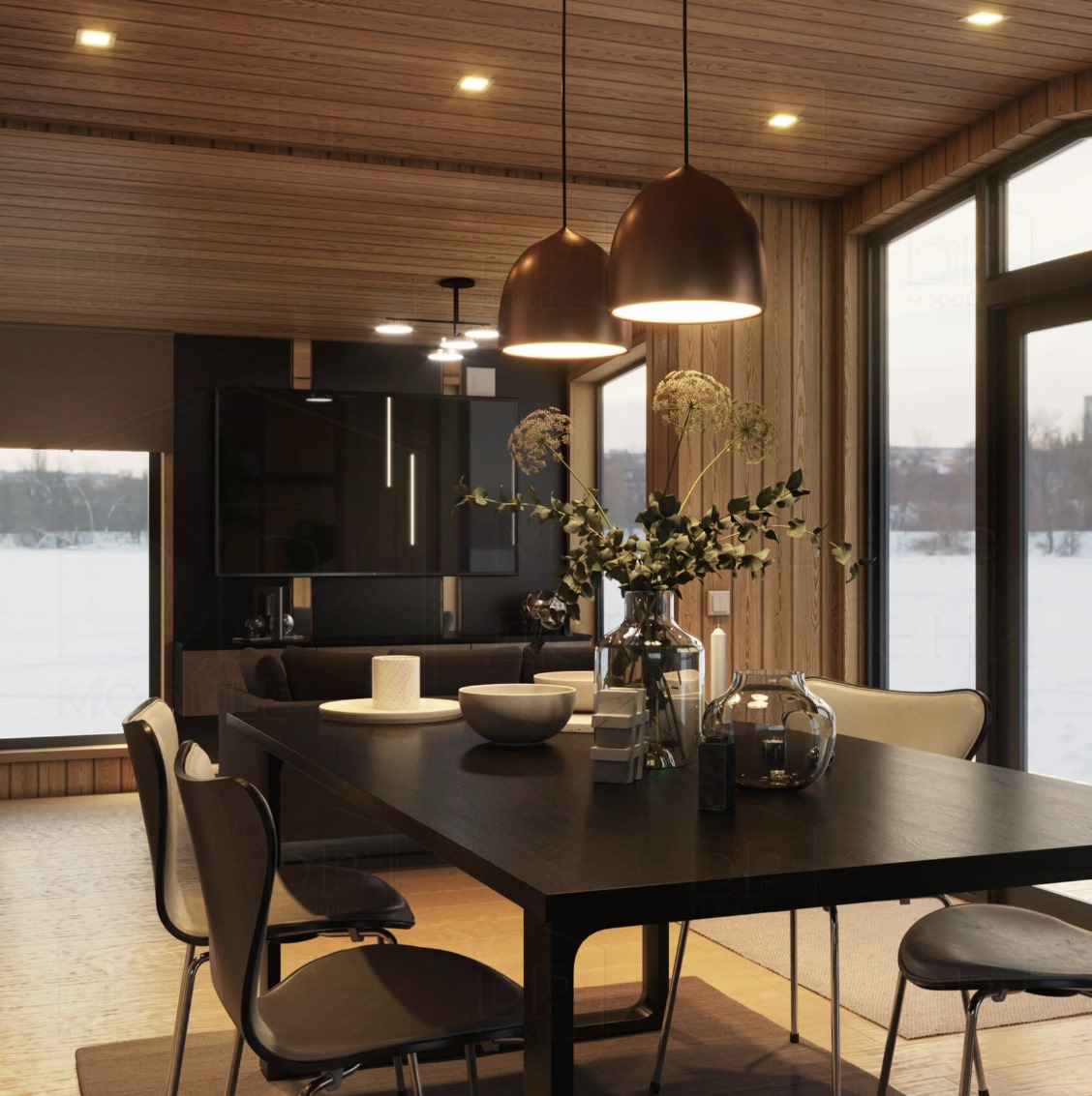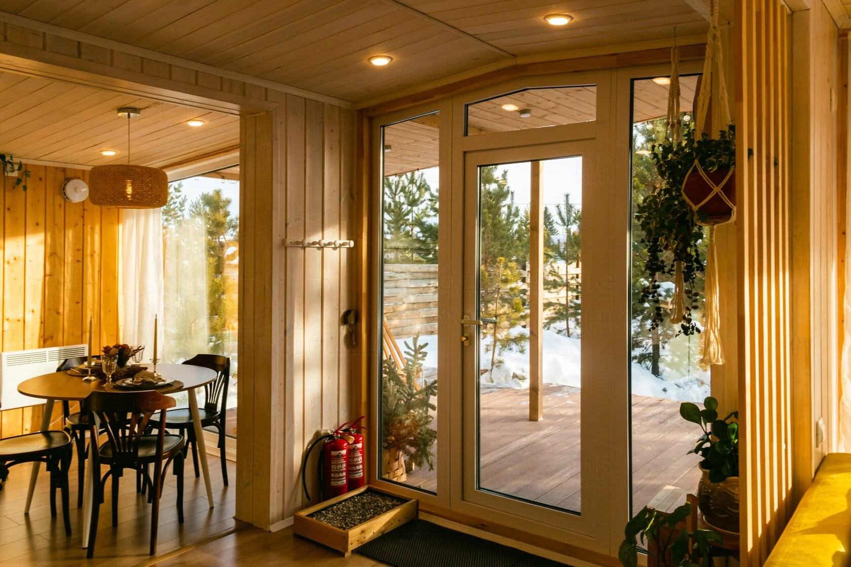 Тройной стеклопакет позволяет создать в доме панорамное остекление, окна и входные двери из ПВХ — двухкамерного стеклопакета и трёхкамерного профиля.