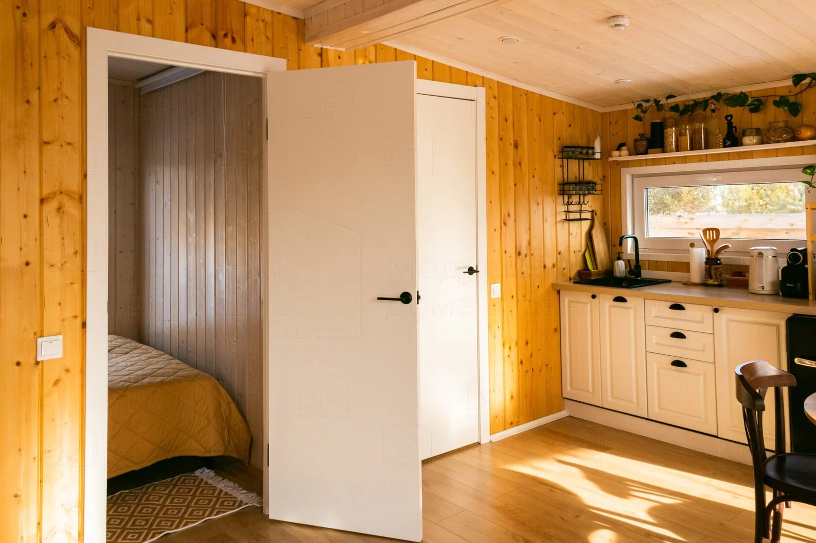 Двухкамерный стеклопакет с замком, белая ламинированная дверь с ручкой и фарнитурой в санузел и спальню