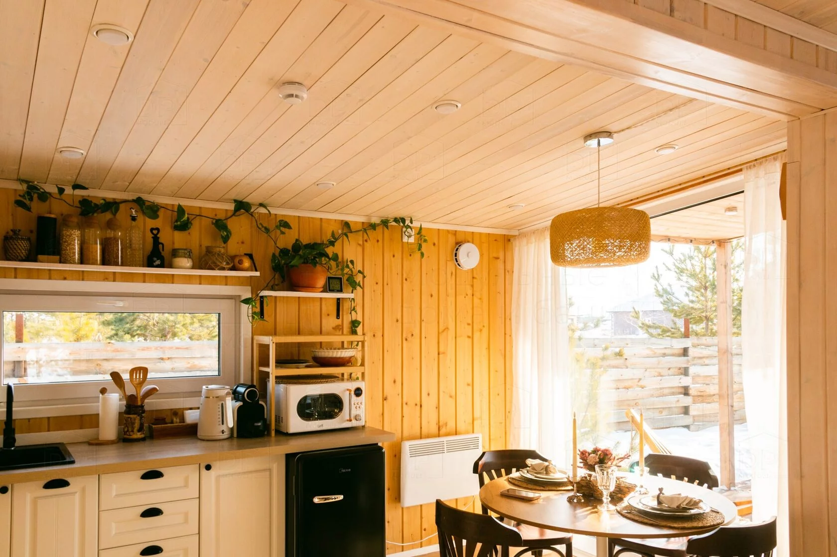 Стены: имитация бруса сорт — АБ, потолок: вагонка штиль АБ или натяжной матовый потолок на выбор.