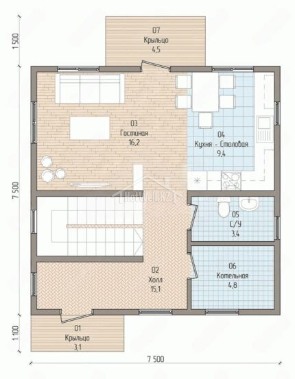 Внешние + внутренние несущие стены из СИП панелей Hotwell.KZ 158 мм (OSB-3 Толщина 9 мм, Пенополистирол ПСБ-С-20Ф)