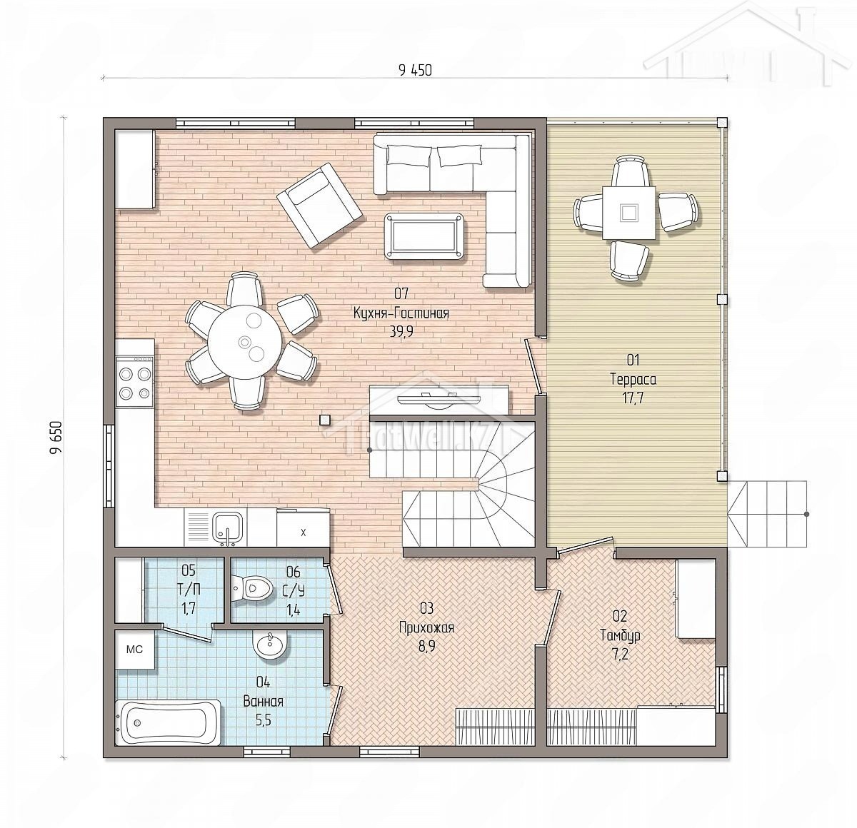 Дом с мансардой 10 на 9 метров, общей площадью 156 м2, из СИП панелей, с бойлерной и террасой.