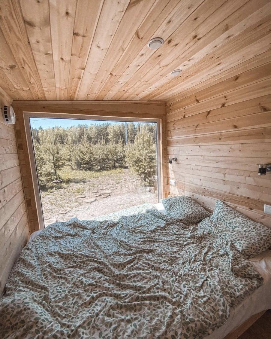 Из доски 100х50, утепление 100 мм. Снаружи ОСБ, внутри ОСБ (СИП панели).