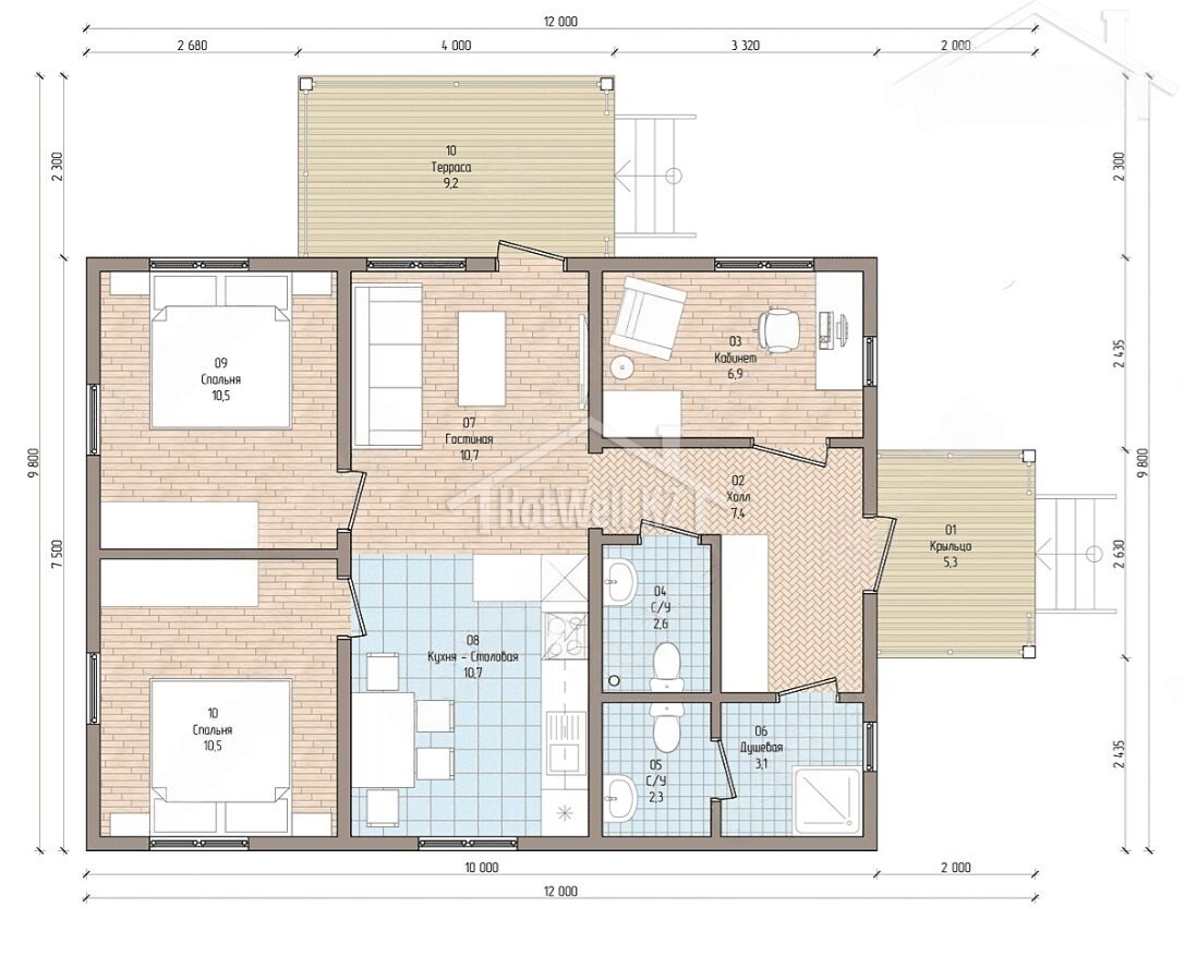 Внешние + внутренние несущие стены из СИП панелей Hotwell.KZ 158 мм (OSB-3 Толщина 9 мм, Пенополистирол ПСБ-С-20Ф)