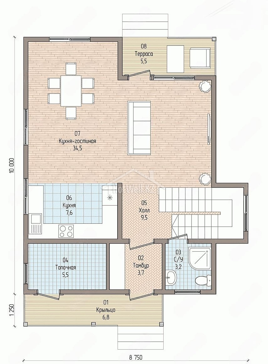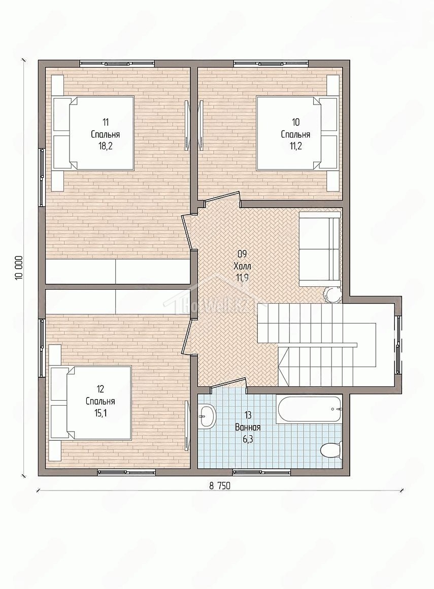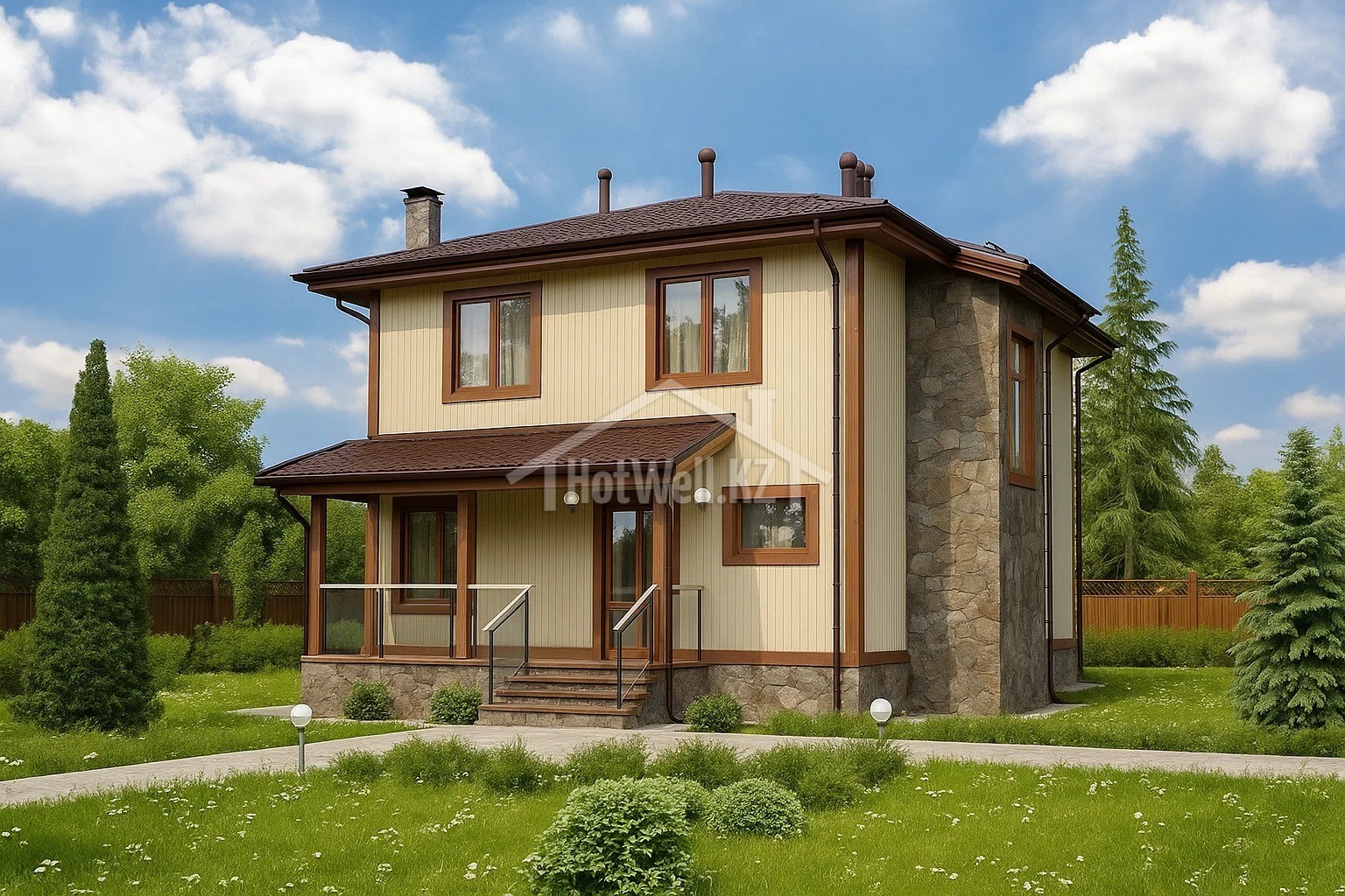 Двухэтажный дом 11 на 9 метров, общей площадью 163 м2, из СИП панелей, с бойлерной и террасой.