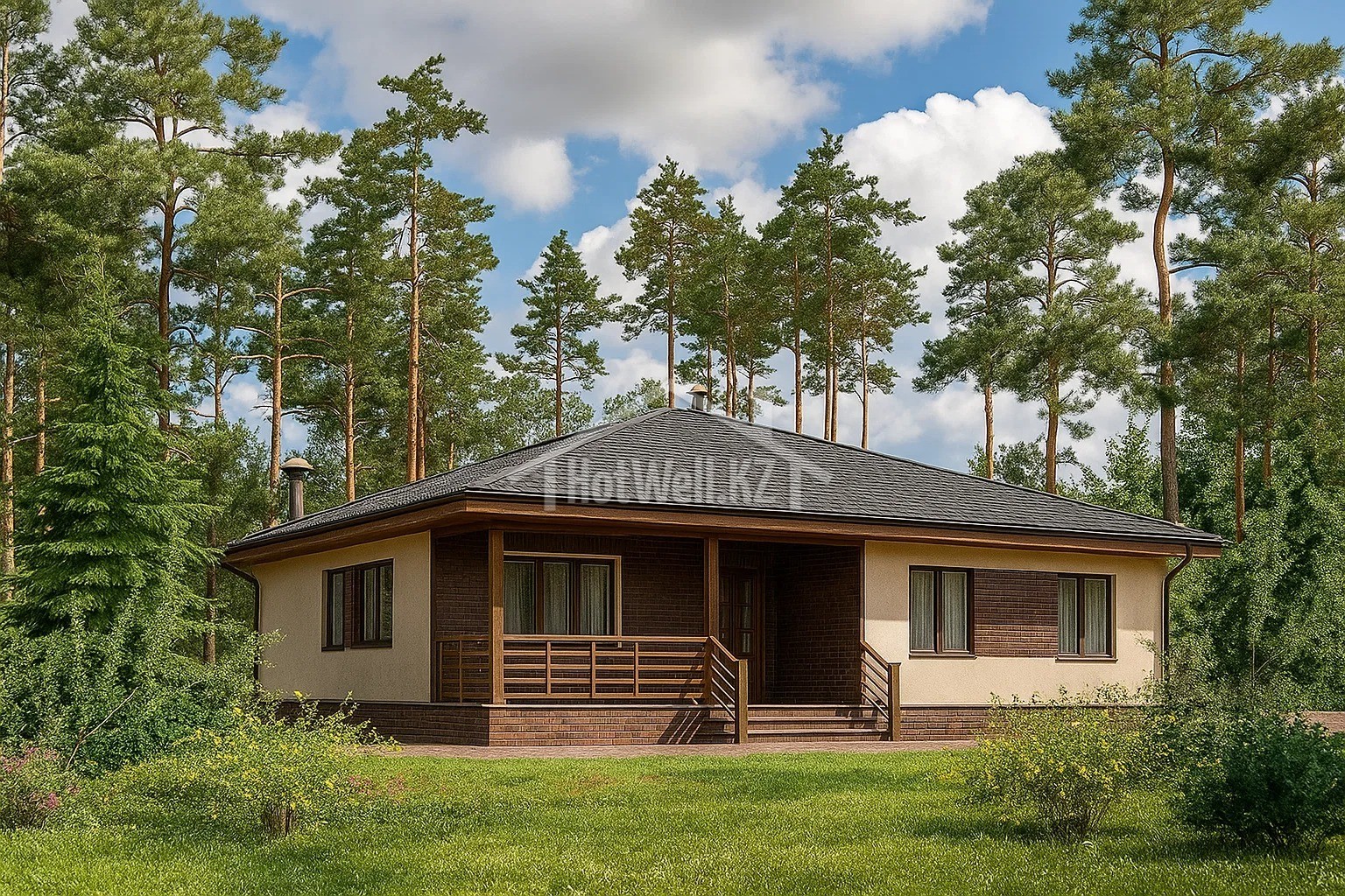 Внешние + внутренние несущие стены из СИП панелей Hotwell.KZ 158 мм (OSB-3 Толщина 9 мм, Пенополистирол ПСБ-С-20Ф)