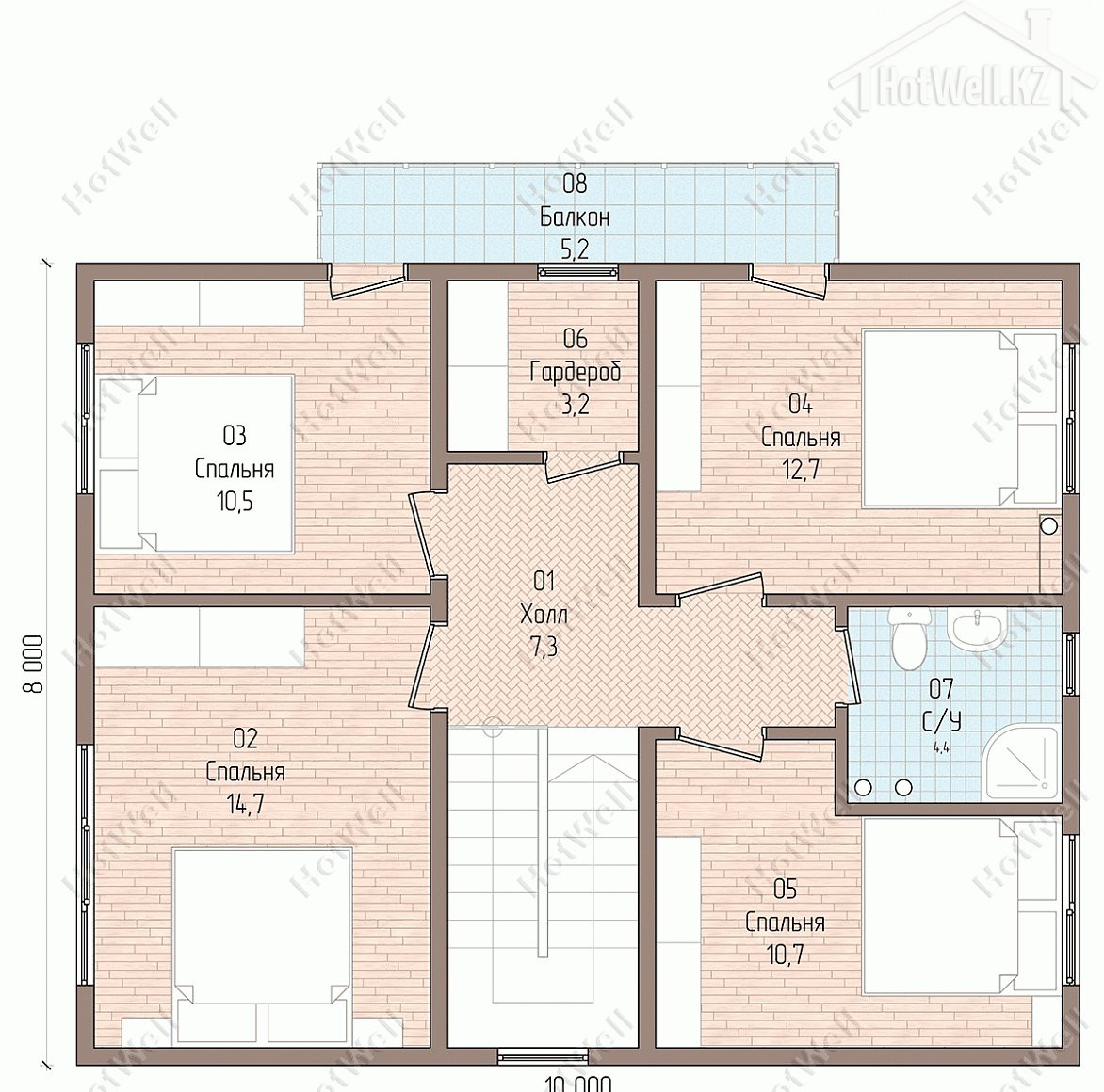 Данный проект дома основан на основе популярного проекта А-100, разница в том что у данного проекта вынесено за пределы дома тех помещение с тамбуром. Проект имеет большую гостинную на первом этаже 22 м2, отдельную кухню. Второй этаж имеет три спальни и сан узел. Тип крыши двускатная. Очень хороший и популярный проект.