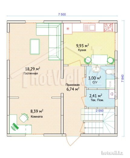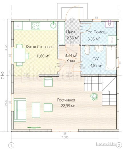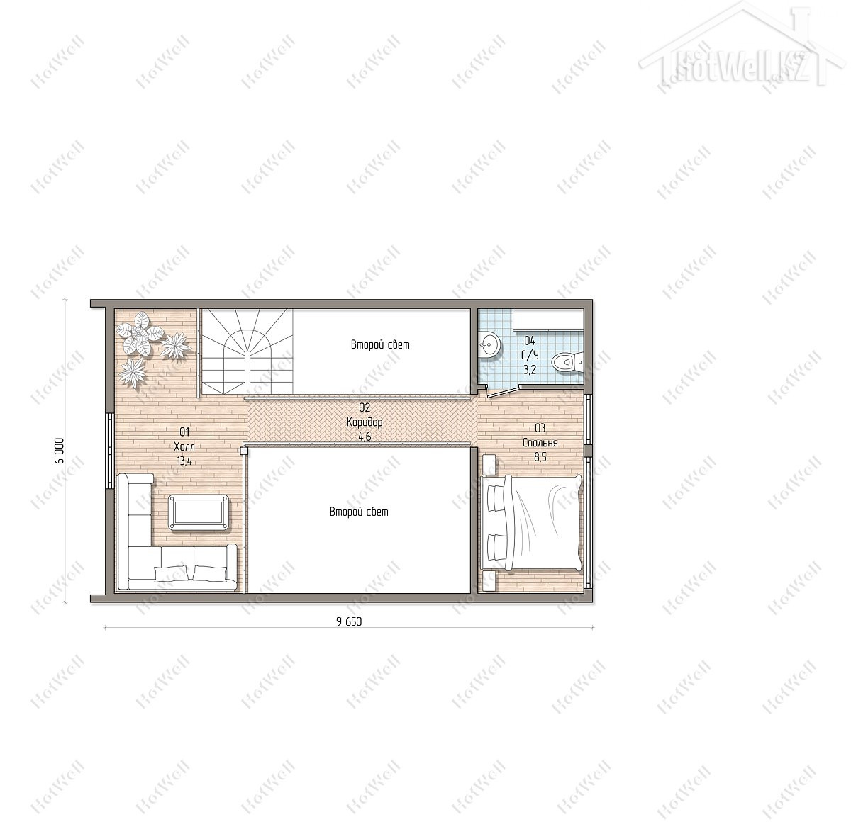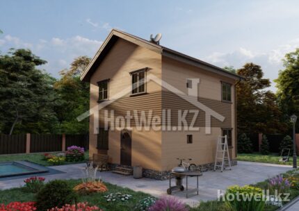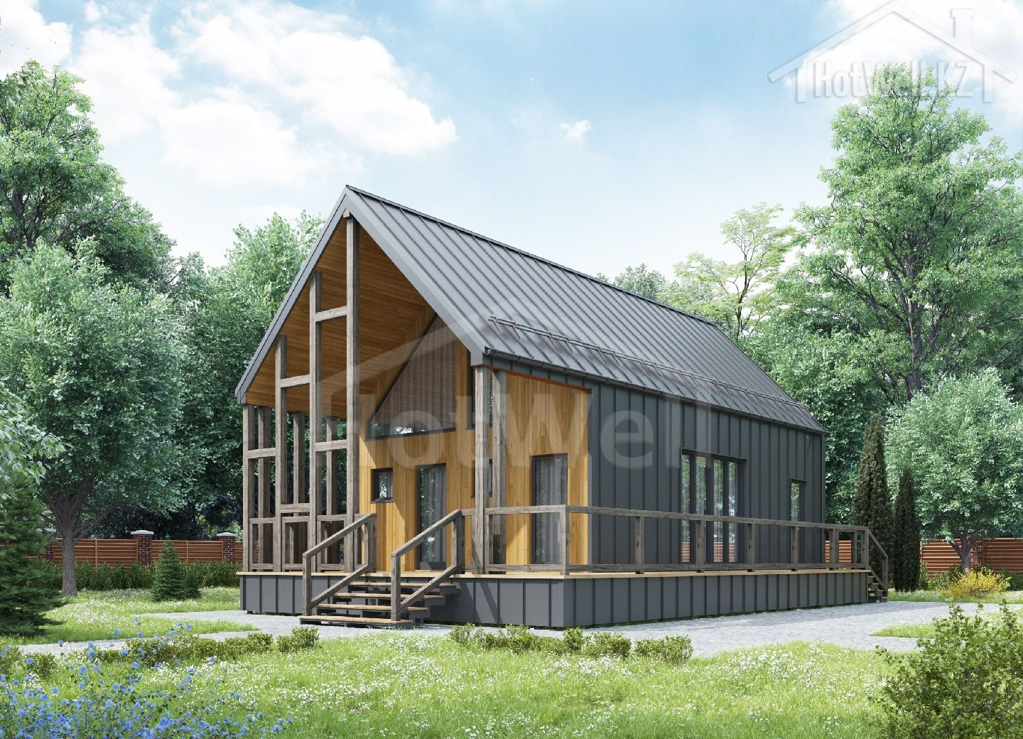 Дом с мансардой 6 на 9,6 метров, общей площадью 116 м2, а так же открытой террасой на 35,5м2 из СИП панелей, с сауной, бойлерной и террасой.