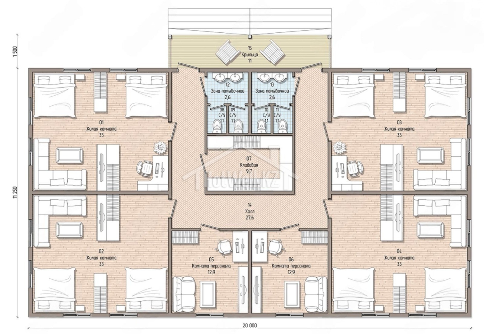 Одноэтажный дом с 6 спальнями на 236 м2 с двускатной кровлей. ТаунХаус