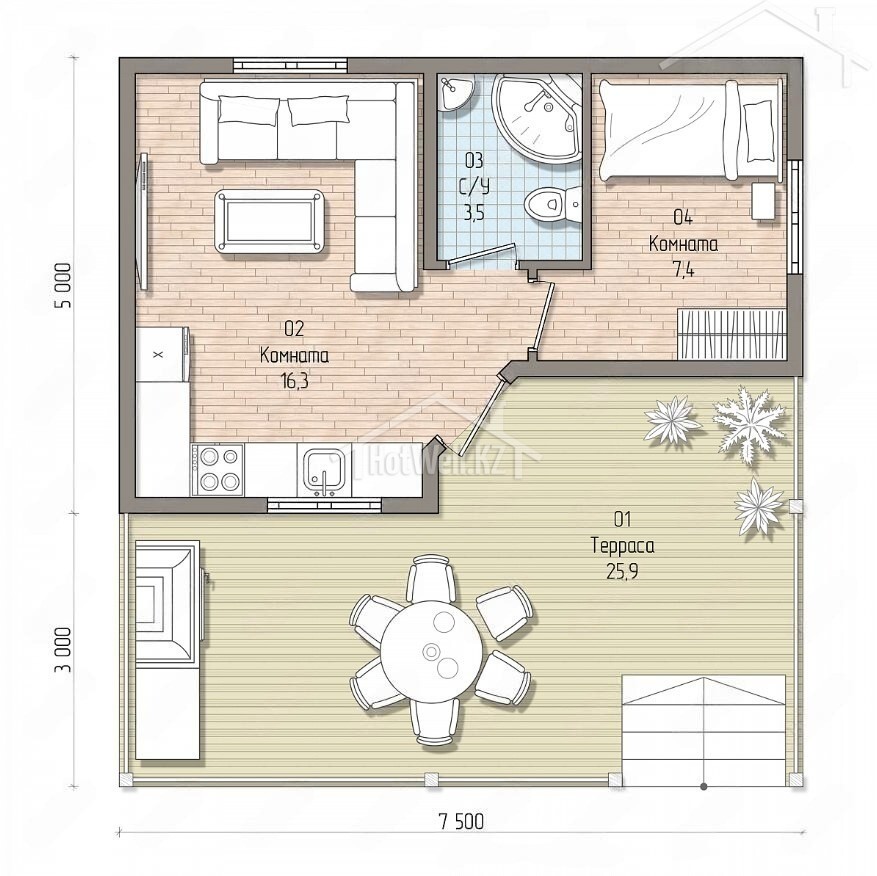 Внешние + внутренние несущие стены из СИП панелей Hotwell.KZ 158 мм (OSB-3 Толщина 9 мм, Пенополистирол ПСБ-С-20Ф)