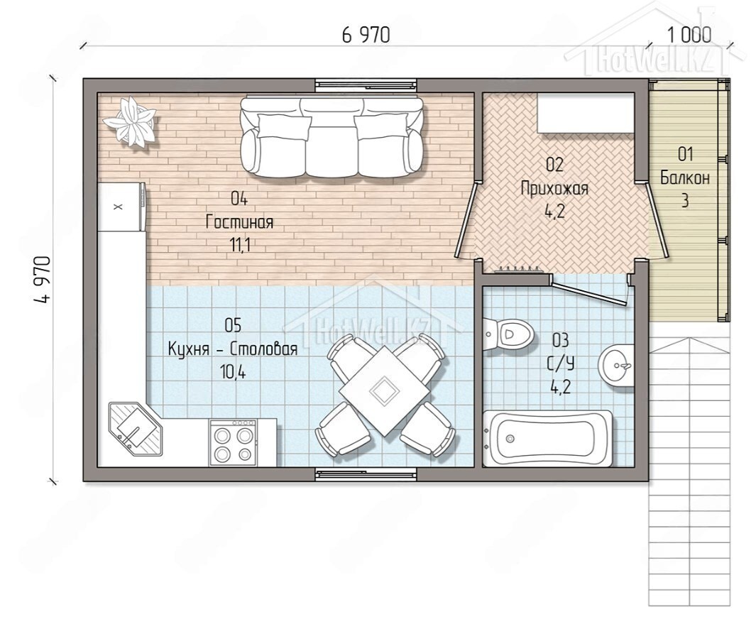 Внешние + внутренние несущие стены из СИП панелей Hotwell.KZ 158 мм (OSB-3 Толщина 9 мм, Пенополистирол ПСБ-С-20Ф)