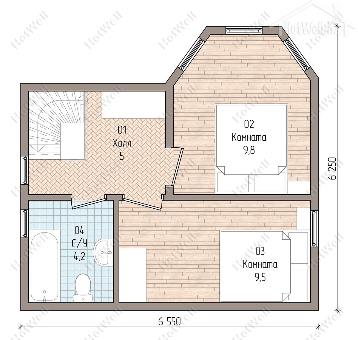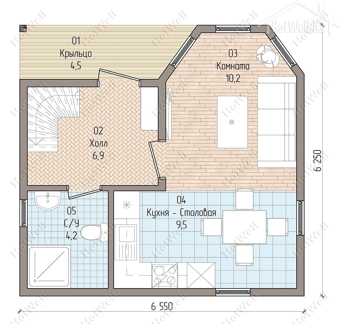 Дом с мансардой 7 на 6 метров, общей площадью 76 м2, из СИП панелей, с террасой и эркером.