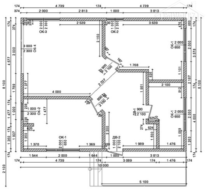 Внешние + внутренние несущие стены из СИП панелей Hotwell.KZ 158 мм (OSB-3 Толщина 9 мм, Пенополистирол ПСБ-С-20Ф)