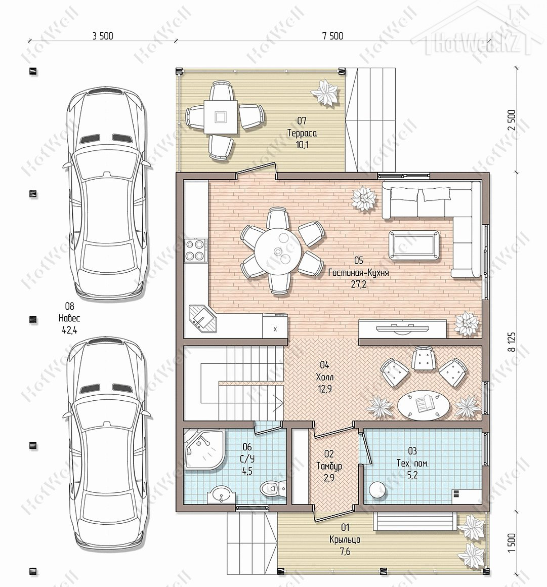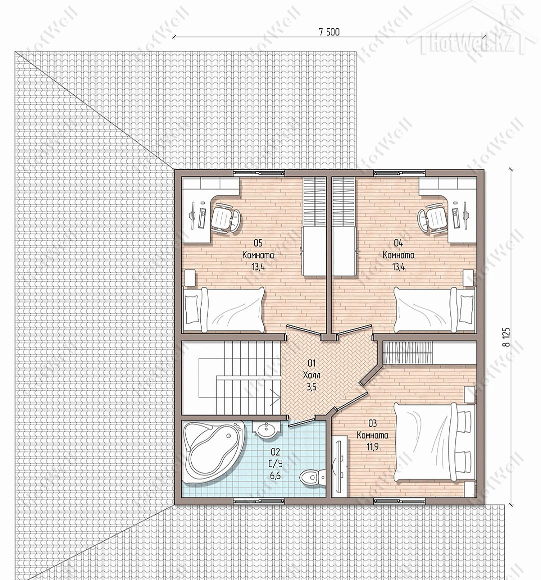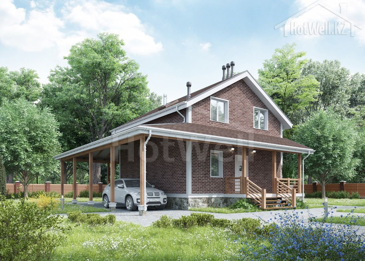 Дом с мансардой 12 на 11 метров, общей площадью 185 м2, из СИП панелей, с бойлерной, навесом и террасой.