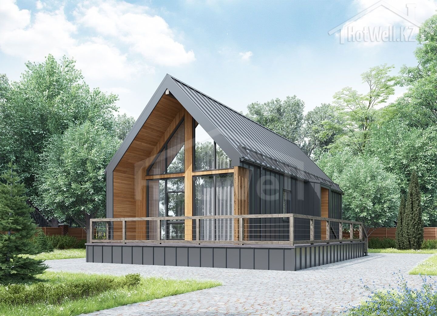 Дом с мансардой 15 на 8 метров, общей площадью 178 м2, из СИП панелей, с бойлерной, террасой, вторым светом и спальней на первом этаже.