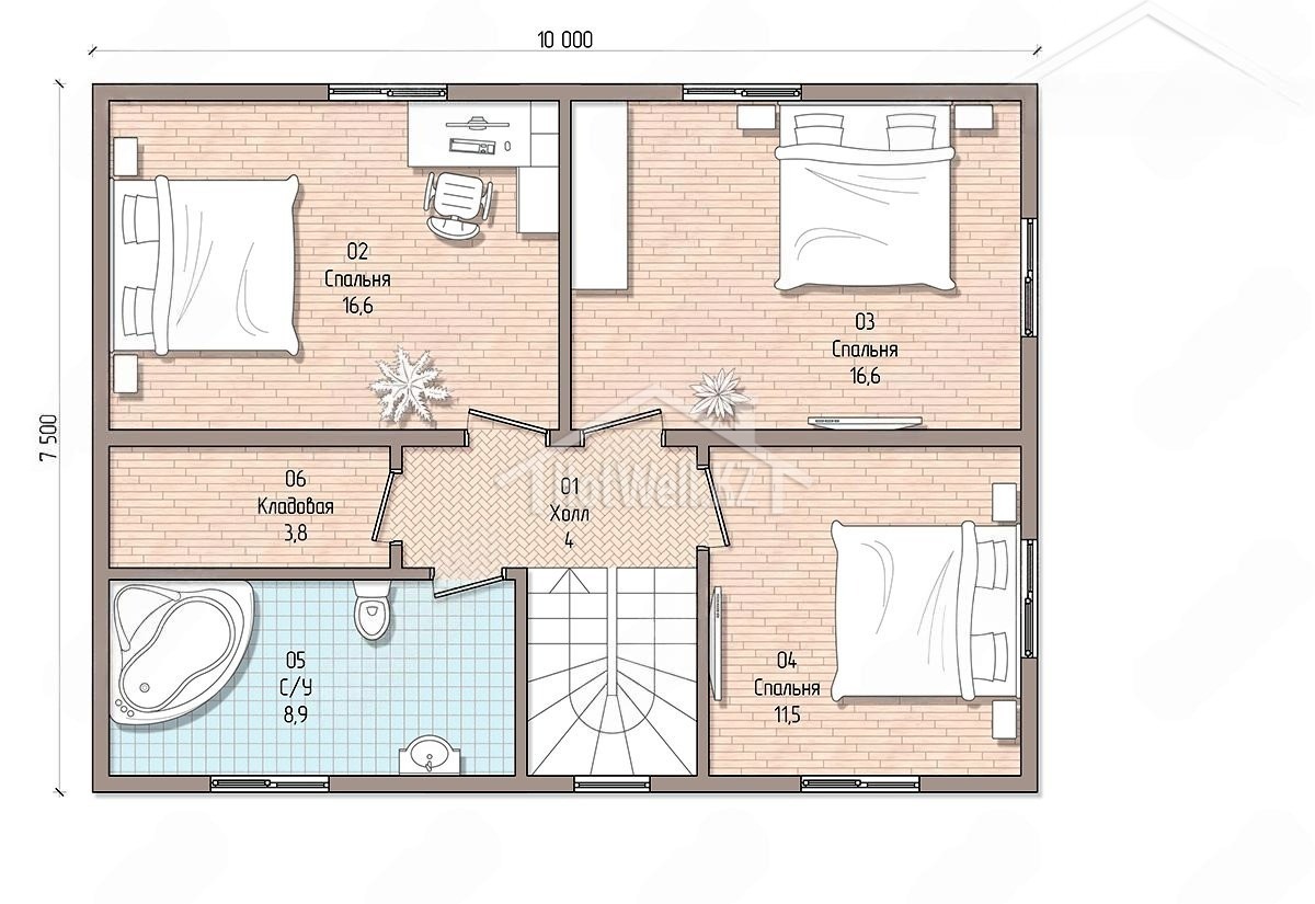 Данный проект дома основан на основе популярного проекта А-100, разница в том что у данного проекта вынесено за пределы дома тех помещение с тамбуром. Проект имеет большую гостинную на первом этаже 22 м2, отдельную кухню. Второй этаж имеет три спальни и сан узел. Тип крыши двускатная. Очень хороший и популярный проект.