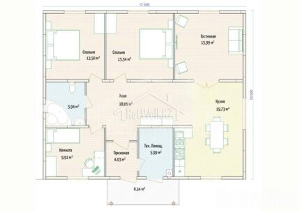Одноэтажный дом 11 на 9 метров, общей площадью 93 м2, из СИП панелей, со спальней на первом этаже.