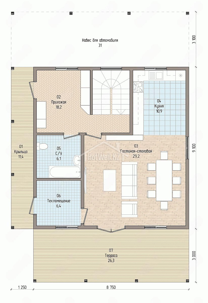 Трехэтажный дом 15 на 10 метров, общей площадью 360 м2, из СИП панелей, с бойлерной, навесом, террасой и балконом.