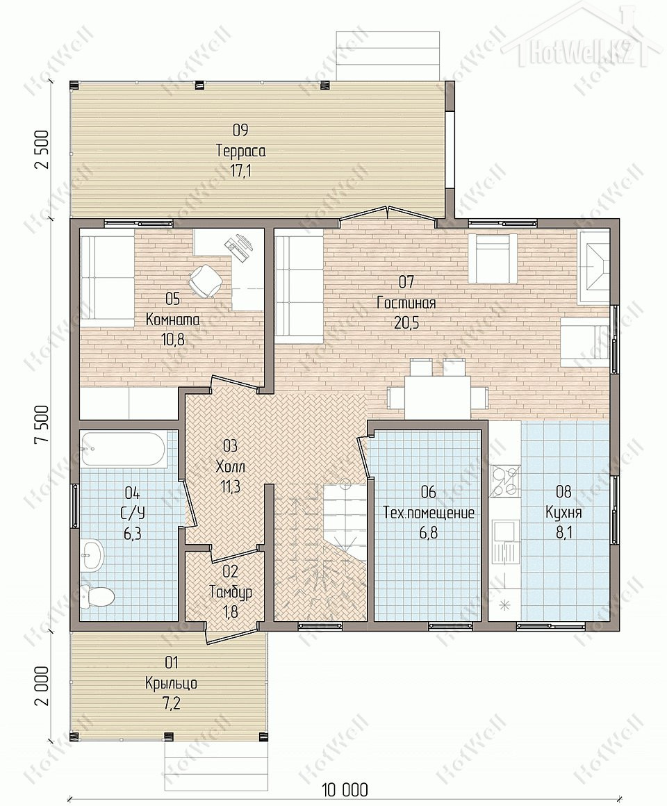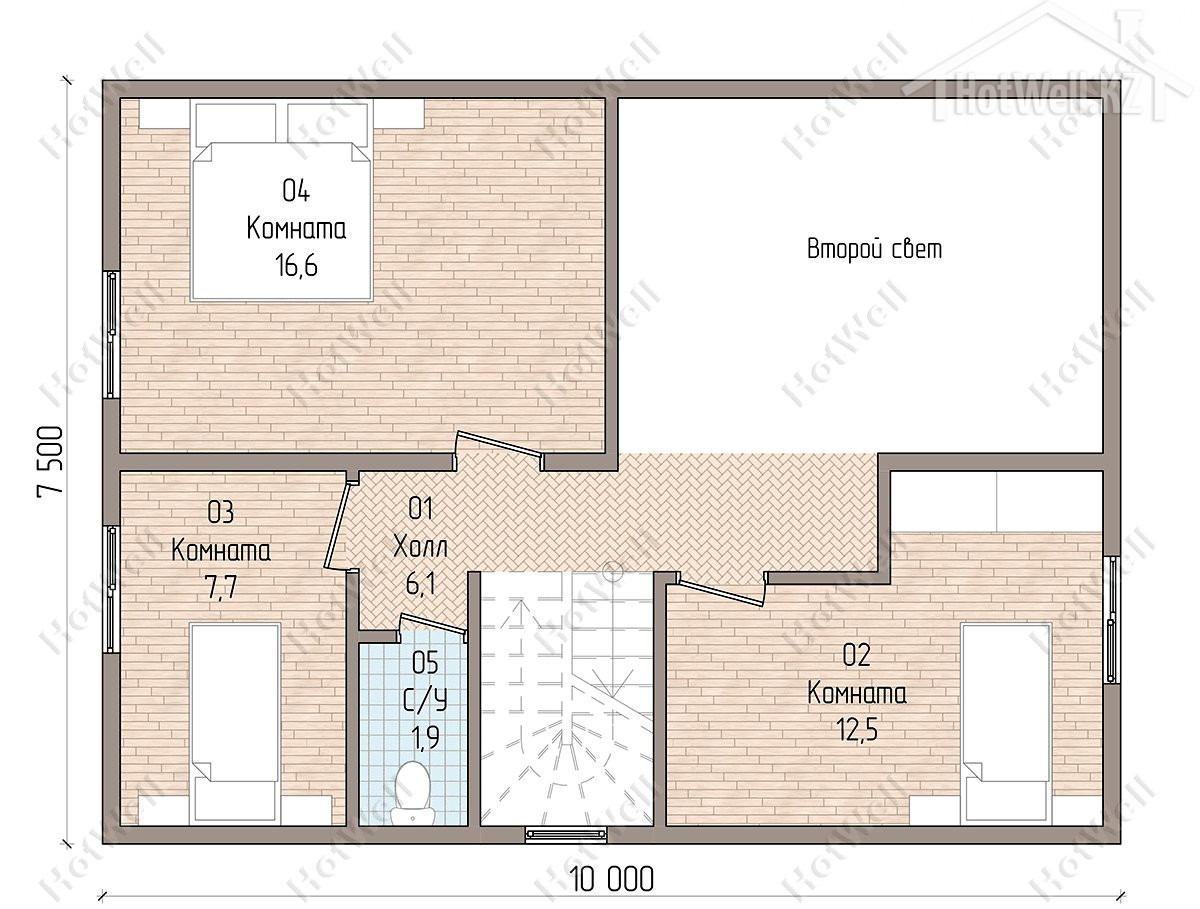 Дом с мансардой 12 на 10 метров, общей площадью 175 м2, из СИП панелей, с бойлерной, террасой, вторым светом и спальней на первом этаже.