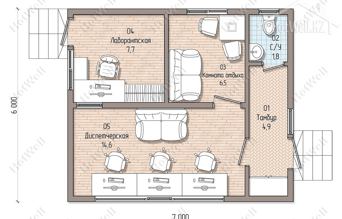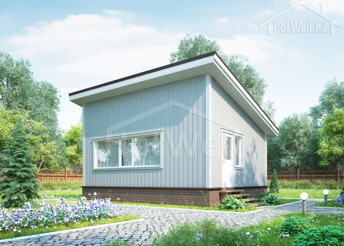 Одноэтажный дом 7 на 6 метров, общей площадью 42 м2, из СИП панелей, со спальней на первом этаже.
