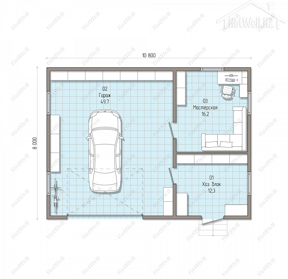 Одноэтажный гараж 11 на 8 метров, общей площадью 86 м2, из СИП панелей, с гаражом.