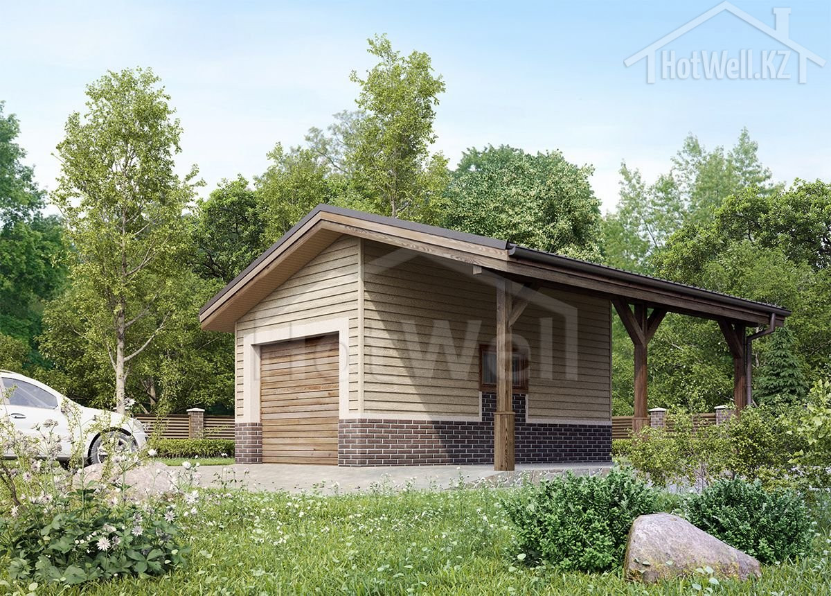 Одноэтажный гараж 7 на 7 метров, общей площадью 48 м2, из СИП панелей, с навесом.