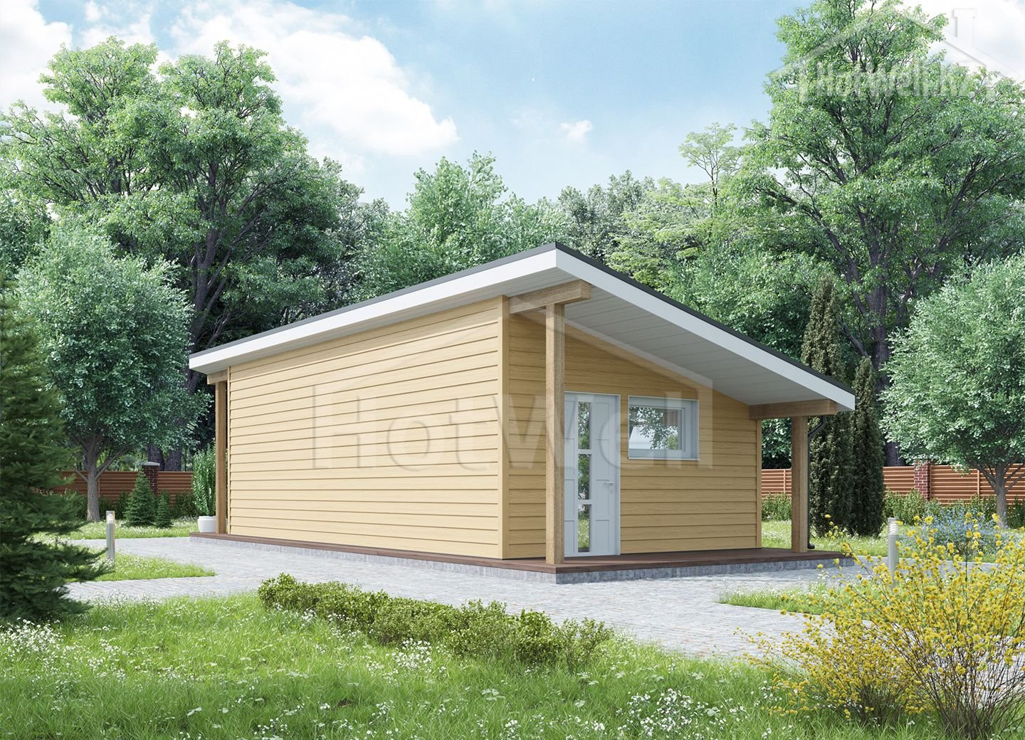 Одноэтажный гараж 12 на 5 метров, общей площадью 47 м2, из СИП панелей, с гаражом и навесом.