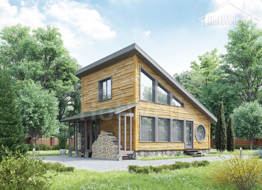 Баня с мансардой 8 на 6 метров, общей площадью 114 м2, из СИП панелей, со вторым светом и спальней на первом этаже