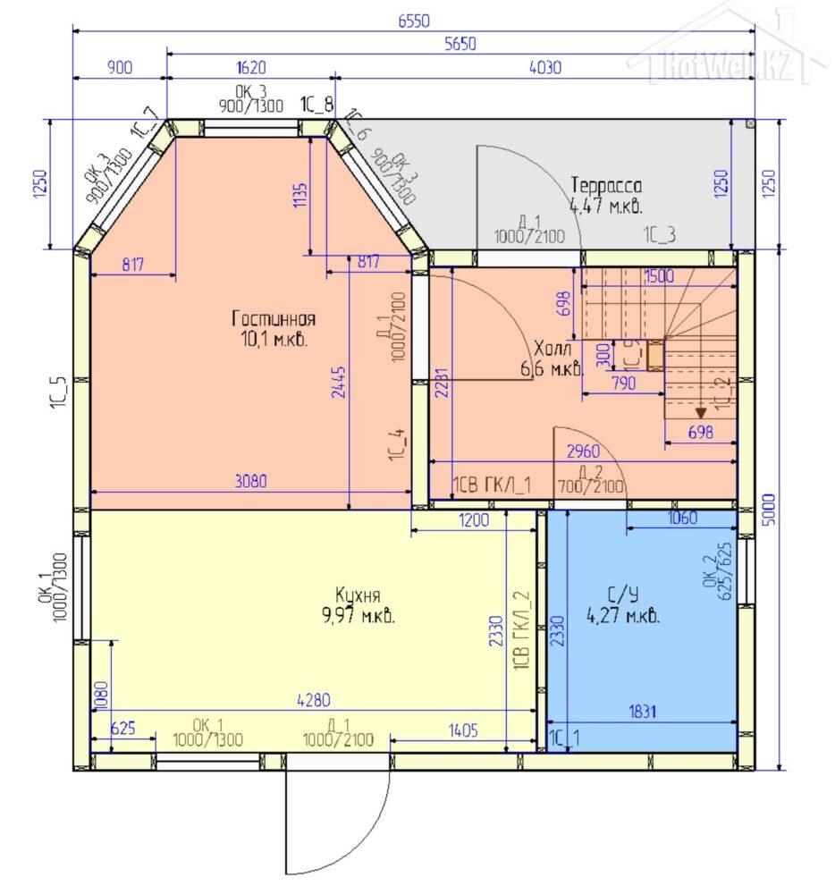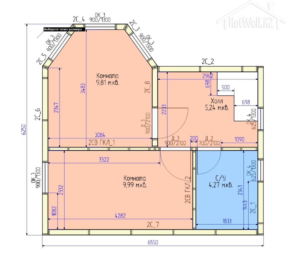 Внешние + внутренние несущие стены из СИП панелей Hotwell.KZ 158 мм (OSB-3 Толщина 9 мм, Пенополистирол ПСБ-С-20Ф)
