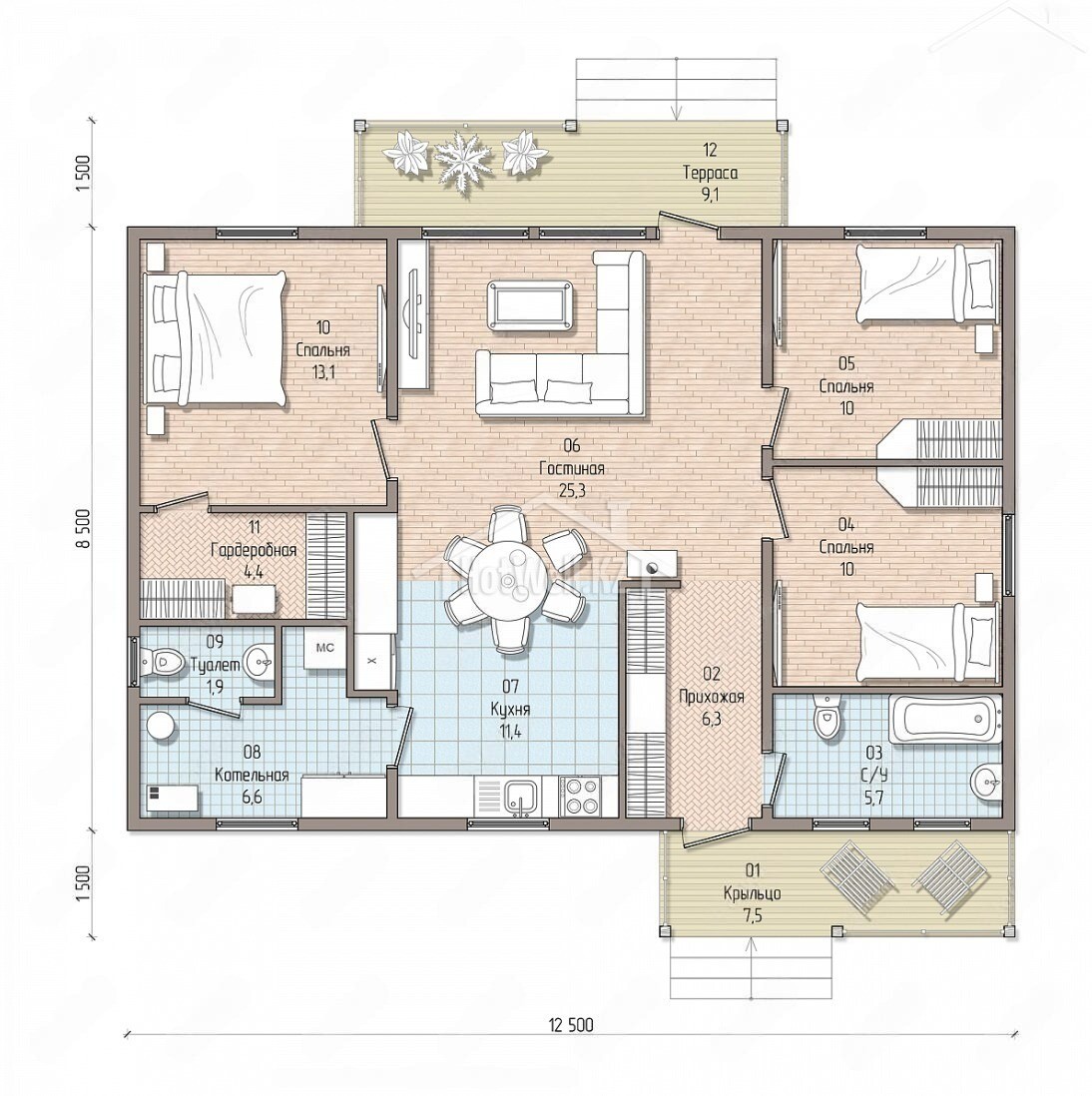 Внешние + внутренние несущие стены из СИП панелей Hotwell.KZ 158 мм (OSB-3 Толщина 9 мм, Пенополистирол ПСБ-С-20Ф)